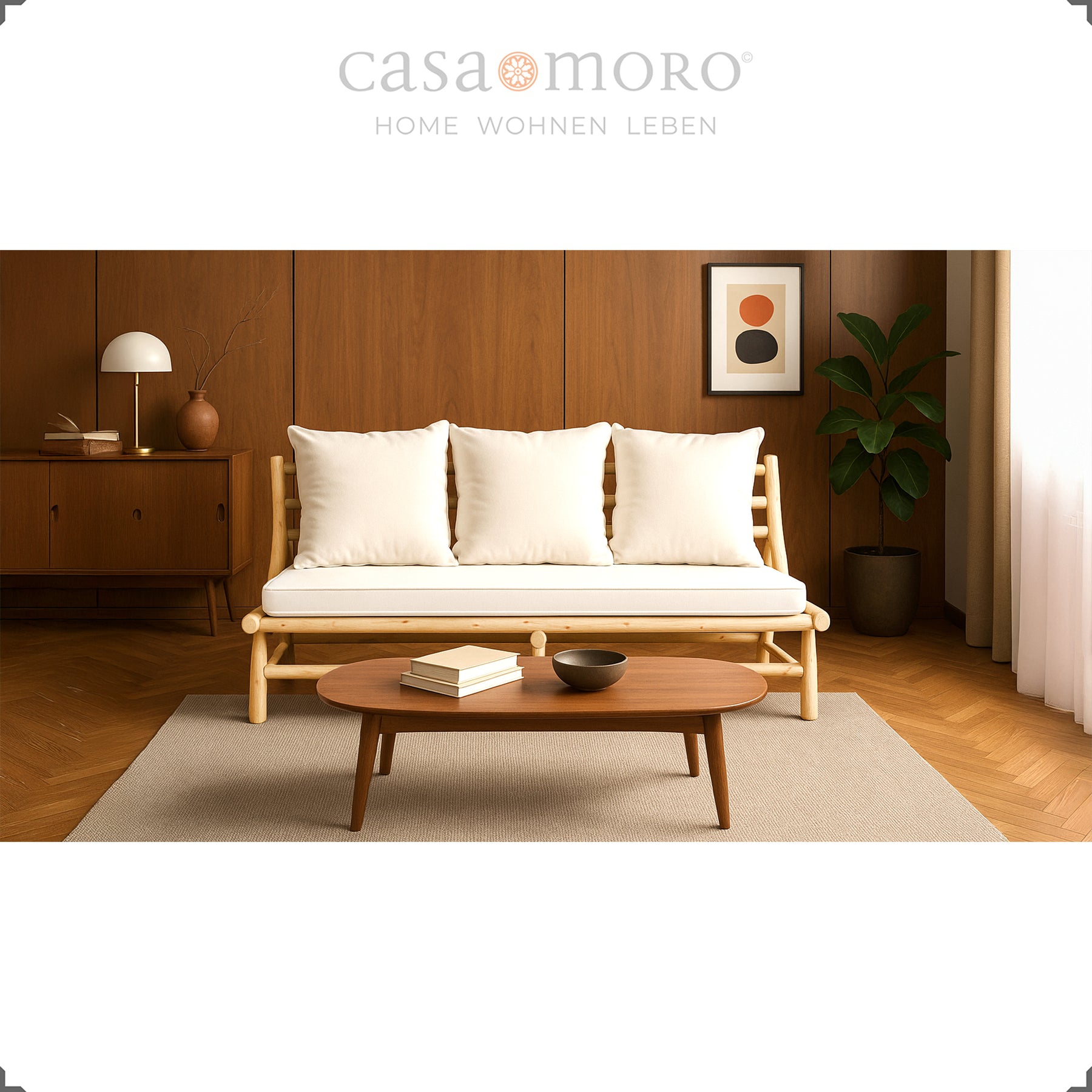 Whether as a garden sofa under the open sky or as a relaxed lounge sofa in the living room, this 3-seater sofa combines natural teak charm with modern comfort. The generous seat invites you to lean back, while the warm natural wood adds a soothing touch of serenity to any ambience.
