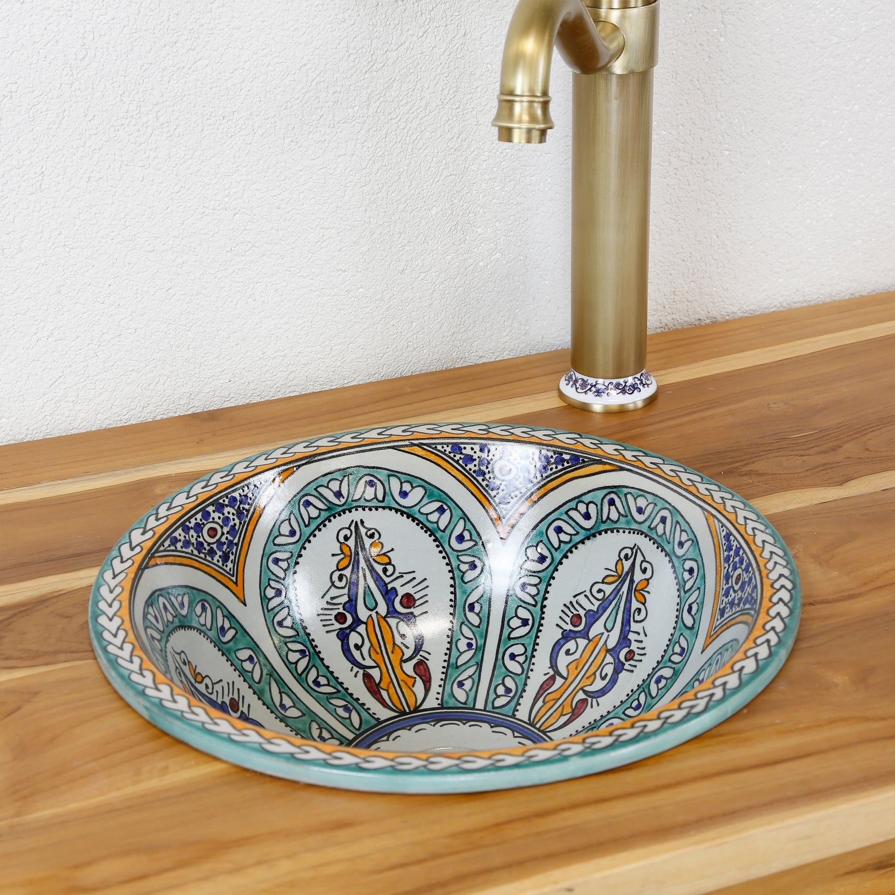 Hand-painted ceramic sink without tap hole – Moorish craftsmanship from Fez