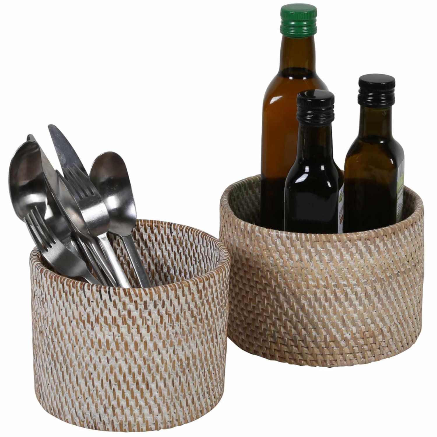 The round rattan basket offers enough space for forks, knives, spoons, and other kitchen utensils and is ideal for use at family dinners, barbecues, or picnics. Thanks to its light weight and sturdy construction, it is suitable for both indoor and outdoor use.