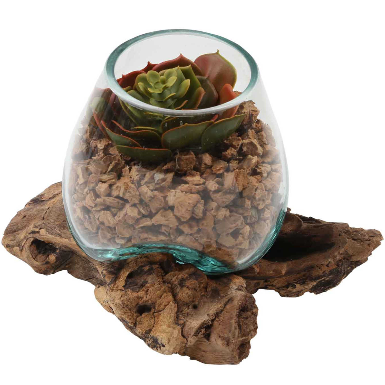 Our magnificent A12 glass vases on burl wood are made from natural materials and are entirely handmade. The stable base is made of sustainable teak burl wood. The mouth-blown recycled glass is placed on the burl wood piece by artisans while still hot and immediately adapts perfectly to the unevenness and indentations of the burl, creating black burn marks on the wood where the two materials meet. Each glass vase on burl wood is guaranteed to be unique and a real eye-catcher!