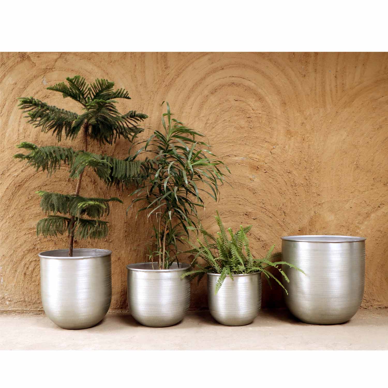The satin-like sheen makes"Alikante"an elegant eye-catcher in your living area. What makes it special is the subtle texture of the surface. Before the flower pot is finished, artisans hammer a fine pattern into the blank. They use aluminum as the material. It is perfect for this process and gives the planter a wonderful shine.