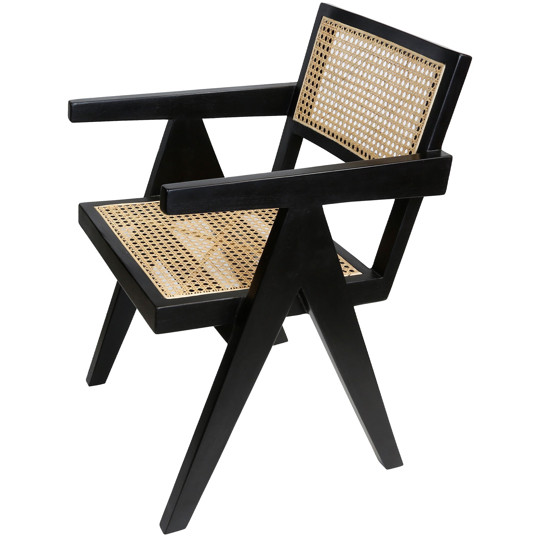 Black armchair with Viennese weave made of teak and rattan, versatile in the dining room, bedroom or home office