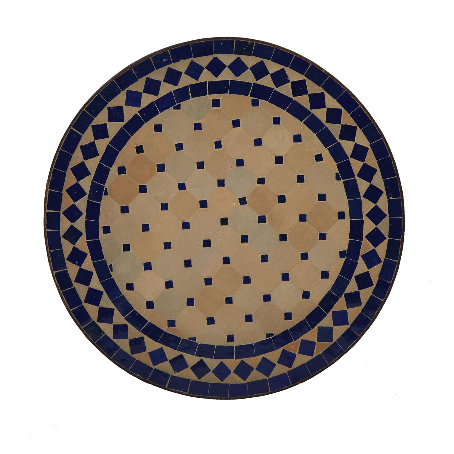 This small table with a diameter of 45 cm is a real all-rounder: as a plant table in the living room, a small side table on the balcony, or a mosaic table for the kitchen corner. The Zellige pattern in blue and terracotta brings a Mediterranean flair to any environment.