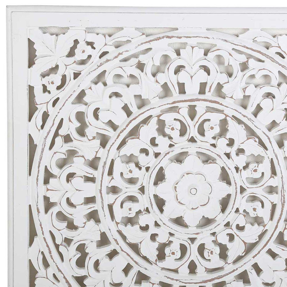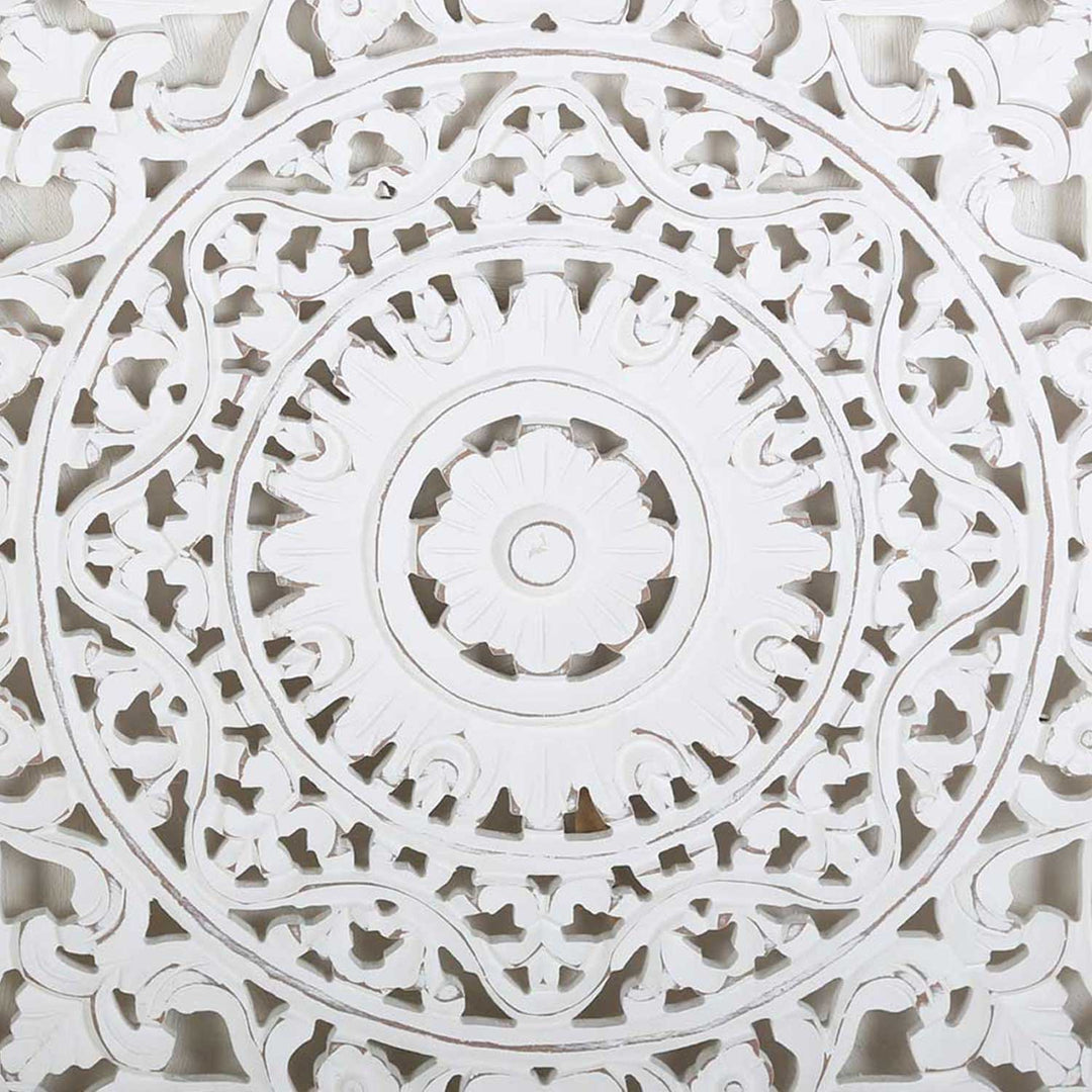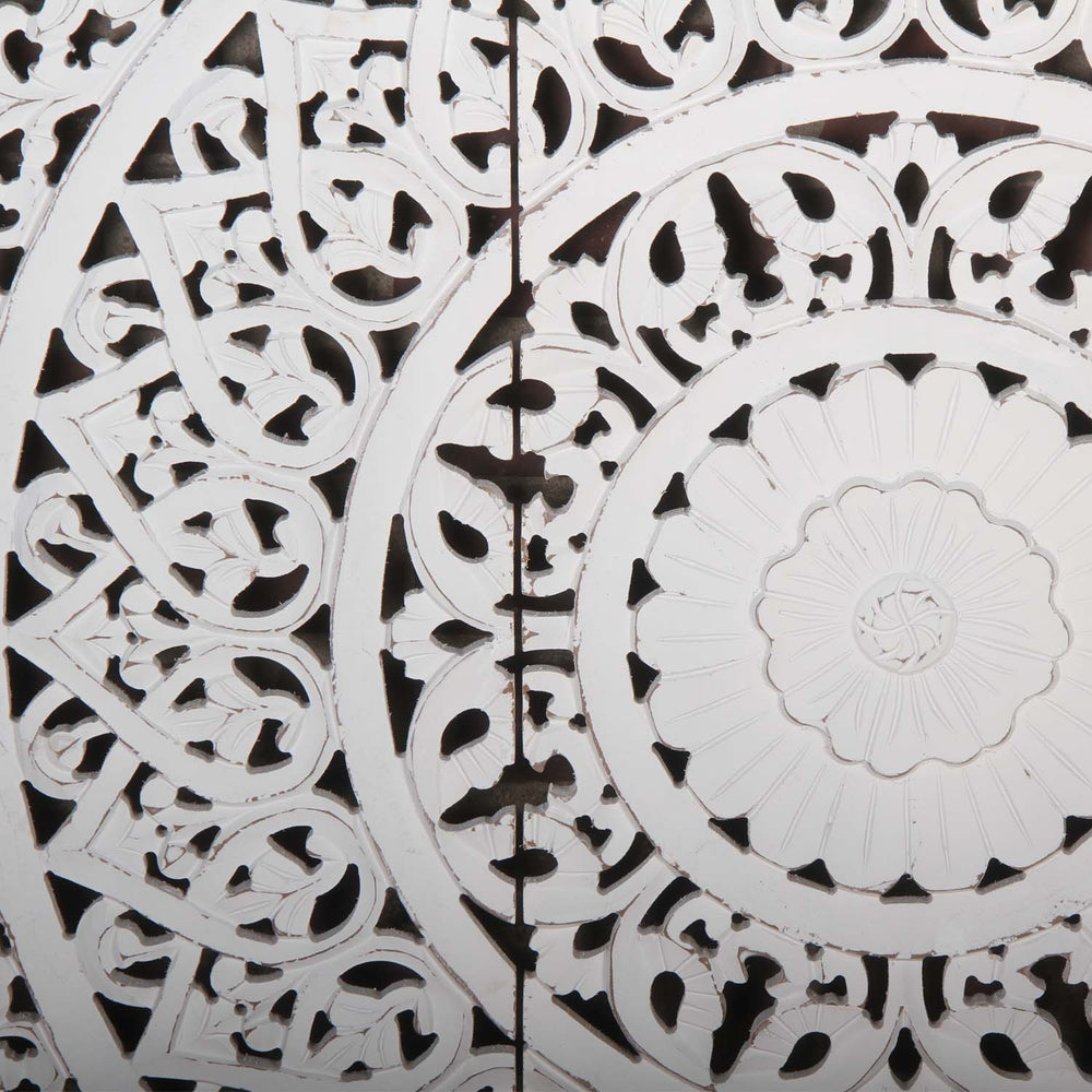 Our mandalas are available in different designs: warm wood tones, bright white, or in a two-tone vintage look. Each wood carving bears the traces of the hands that shaped it—no two lines are alike, no pattern is exactly repeated. Thus, each mandala brings a distinctive energy to your home, as if it carries within it the silence and wisdom of centuries of meditation.