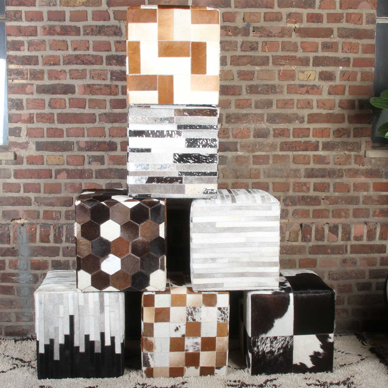 Our Jaspal fur stool is handmade using the collage technique in a patchwork design, making each piece unique.