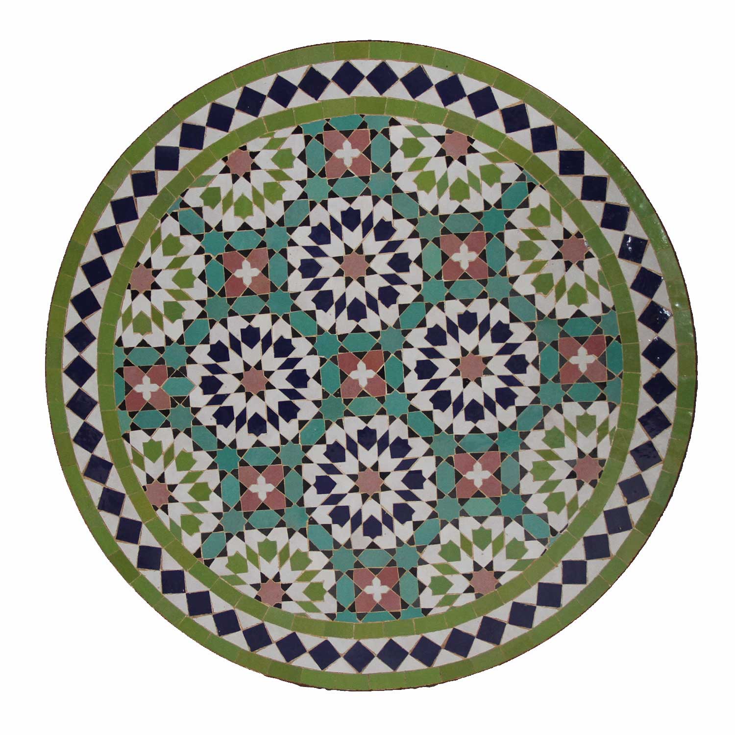 A diamond-shaped border is typical of a Moroccan mosaic table. In addition to its decorative function, it also has a symbolic meaning: as stylized eyes (witch's eyes), square diamonds are said to protect people from all kinds of misfortune. Mosaic artists place a wide variety of patterns and ornaments within this frame. However, one thing always remains the same: the glazed mosaic pieces are first cut from the handcrafted zellige tiles using a sharp-edged hammer. Each tabletop is purely handmade and therefore absolutely unique.