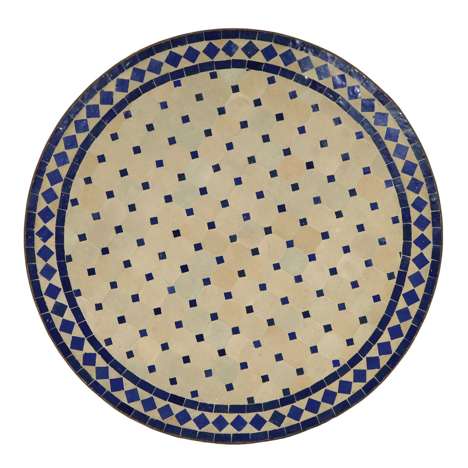 Blue symbolizes freshness and coolness, has a calming effect, and inspires longing. In this mosaic dining table, cobalt blue zellige diamonds accentuate the natural-colored tiles made of unglazed clay. Since blue is the most commonly used color for Moroccan mosaic furniture, the blue mosaic table can be combined with other garden furniture and fountains to suit your mood.
