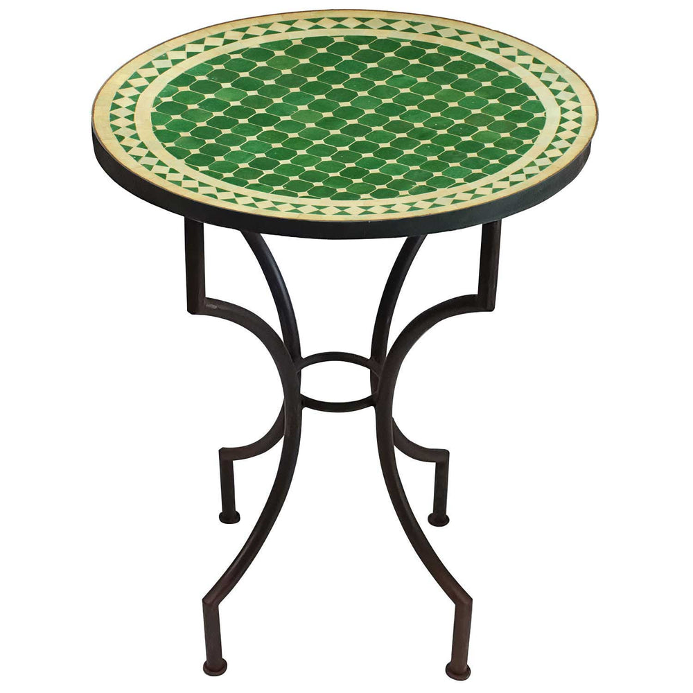 In mosaic tables, the tabletop is made of artfully assembled hand-cut tiles on a sturdy concrete base. The table frame is usually made of hand-forged iron. The art of blacksmithing, also deeply rooted in Moroccan tradition, ensures robust, durable structures. The handmade iron frames are carefully shaped, often incorporating decorative, curved elements that harmoniously complement the fine mosaic pattern of the tabletop.