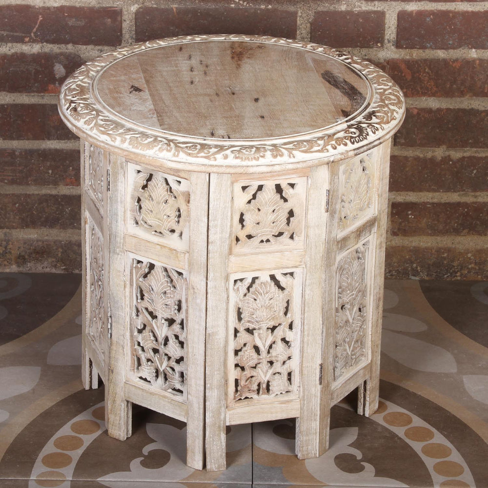 Our side tables are versatile – from coffee tables to flower tables. Bedside tables from Morocco and India bring romantic charm to your bedroom, while rustic, Moorish, or colonial designs radiate a special warmth. Our mosaic tables, with weatherproof Zellige mosaic, are particularly ideal for indoor and outdoor use.