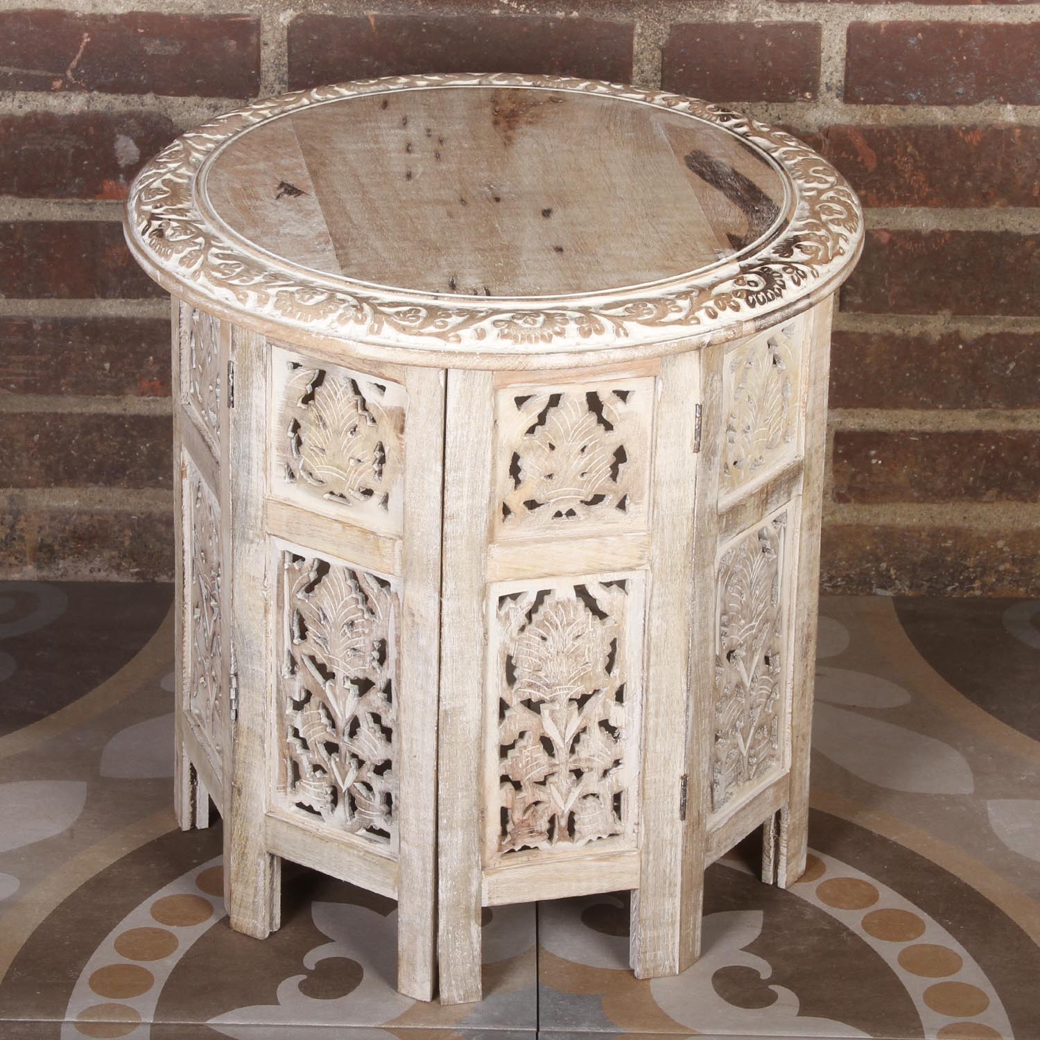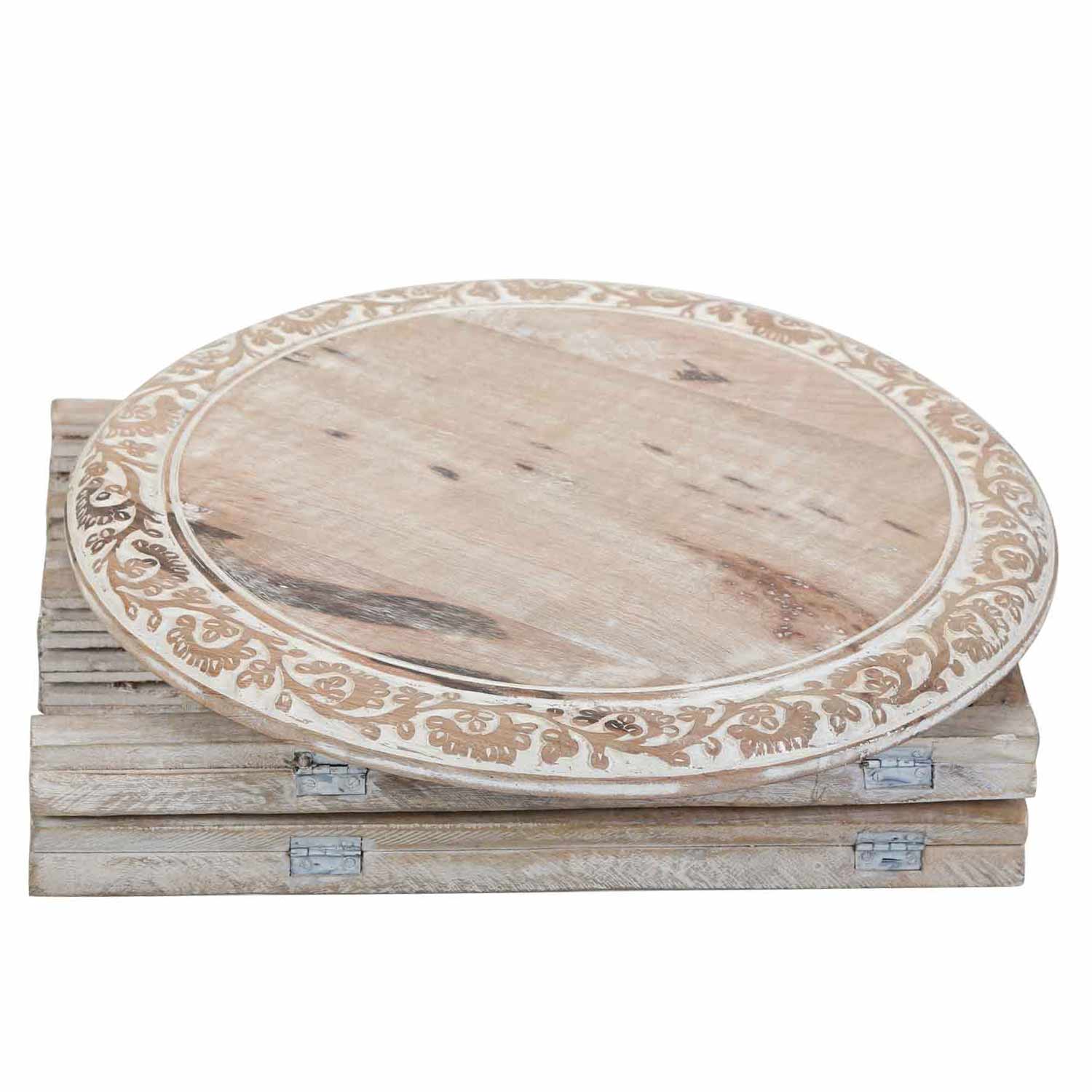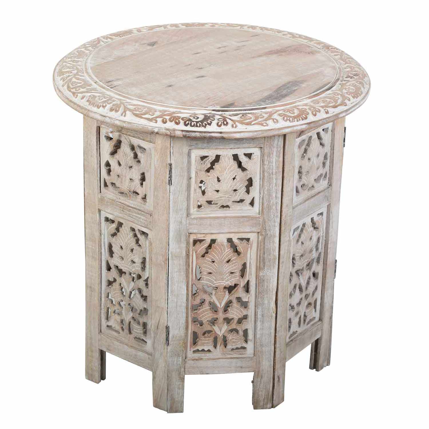 - Material: mango wood with oriental carvings.