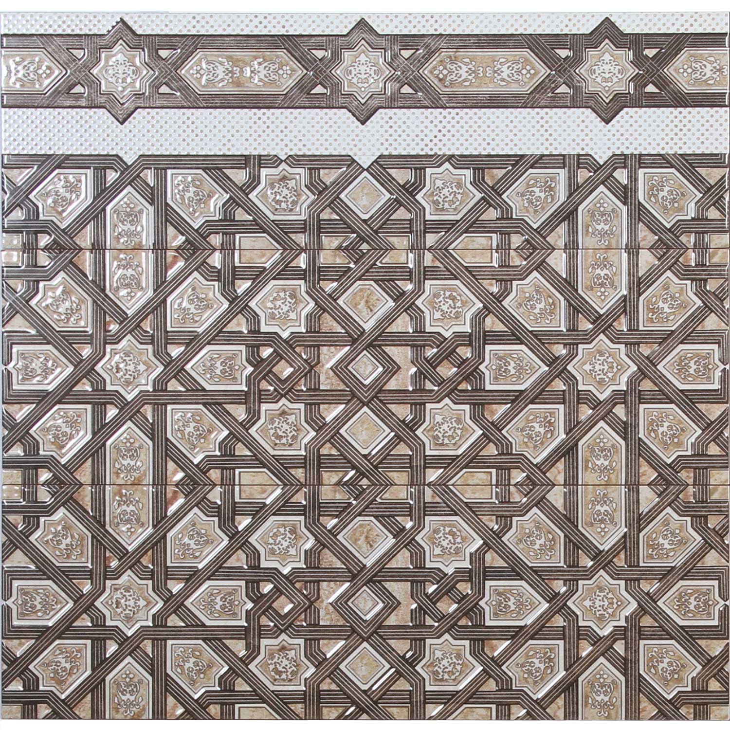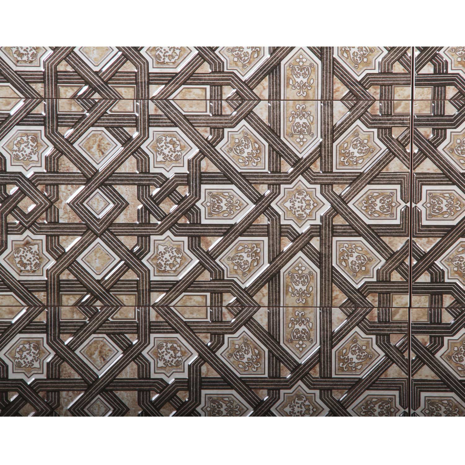 The tiles are made of ceramic material and are specially designed for indoor wall surfaces. The glazed surface ensures long-lasting, easy-care use and highlights the fine patterns particularly clearly.
