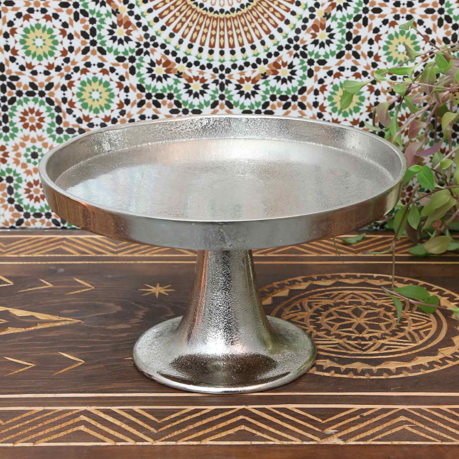 The color of the round Catania tray is silver. Silver always exudes a touch ofluxury and elegance andfits smoothly into any living area.Whetheras a tray or cake plate in the kitchen, as a serving plate in the living room, as a fruit plate in the dining room or asa decorative platefor your next party, wedding, birthday or Christmas, this serving tray is anabsolute eye-catcher.