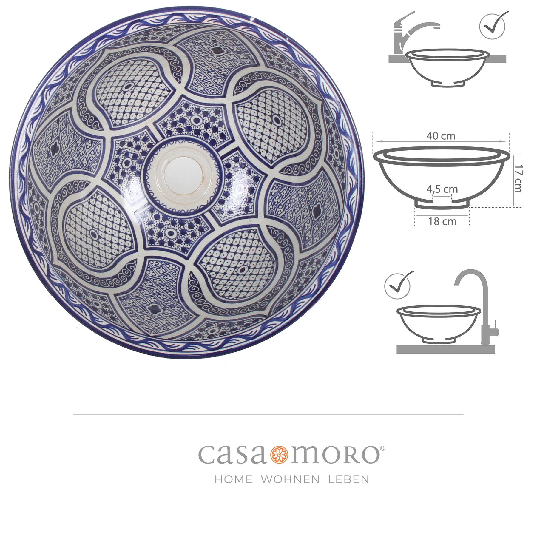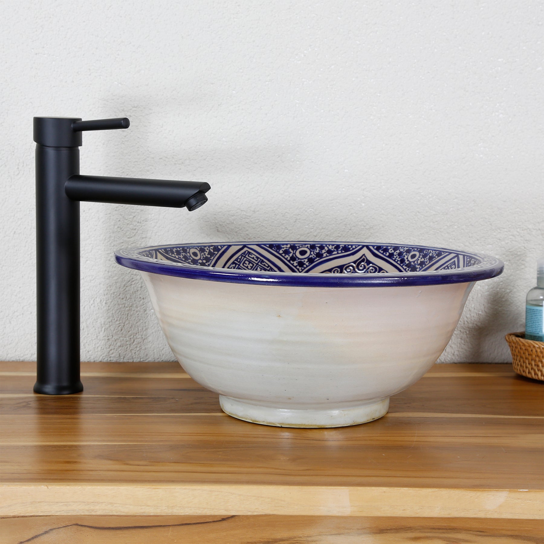 This round washbasin brings the traditional pottery art of Fez directly into your home. For centuries, Fez has been the center of Moorish ceramics production—even today, washbasins are still shaped by hand, hand-painted, and fired in traditional kilns. Each washbasin is truly unique, with a timeless appeal and artistic hand-painting.