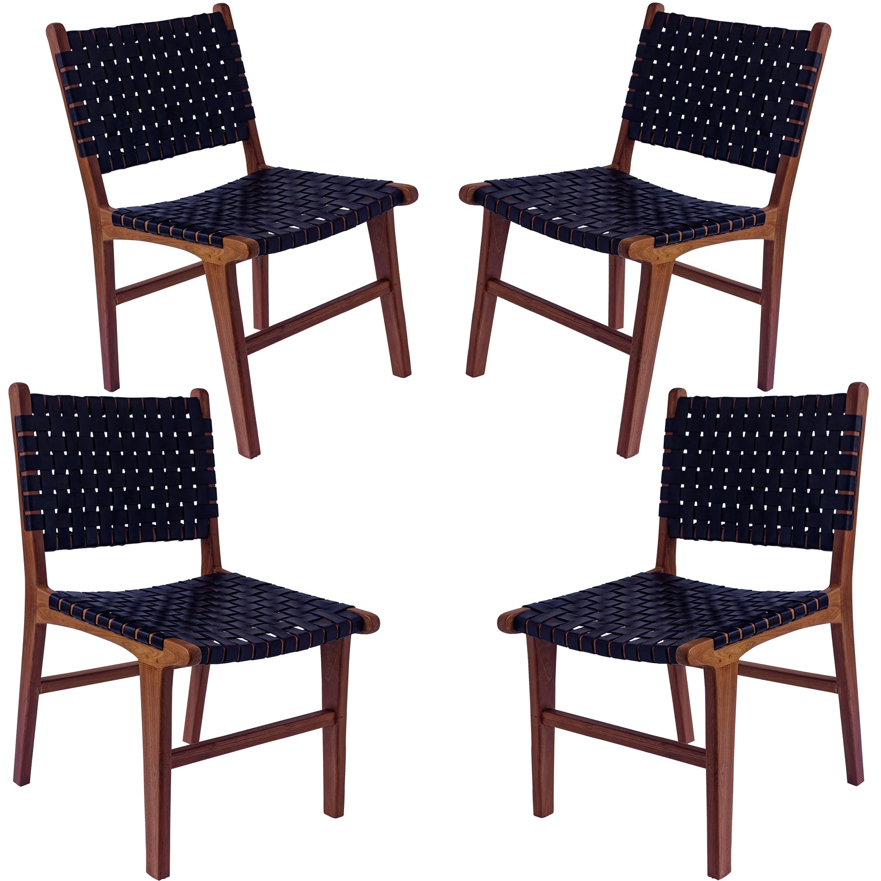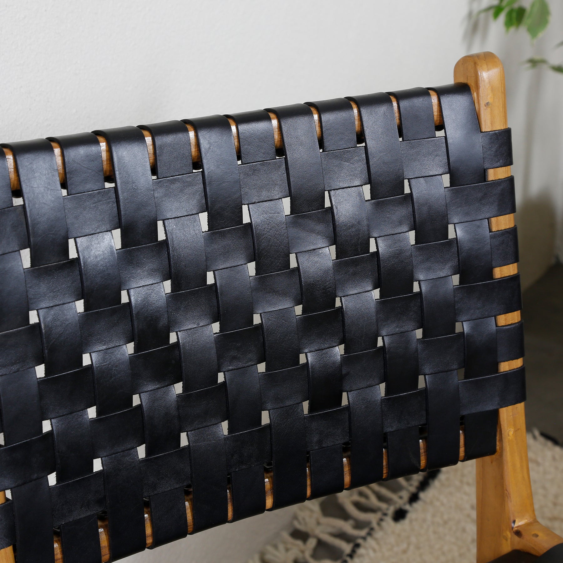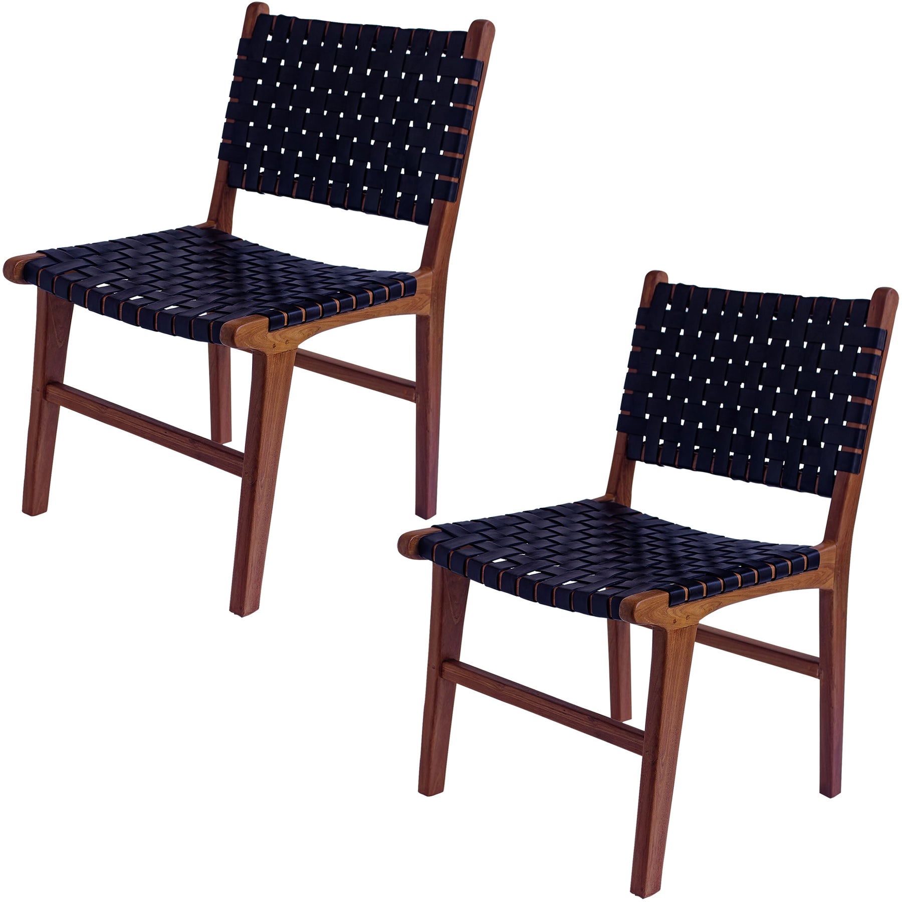 Multipurpose and dining chair made of solid teak with a wooden seat and genuine leather in a woven design – breathable, sturdy, and elegant.