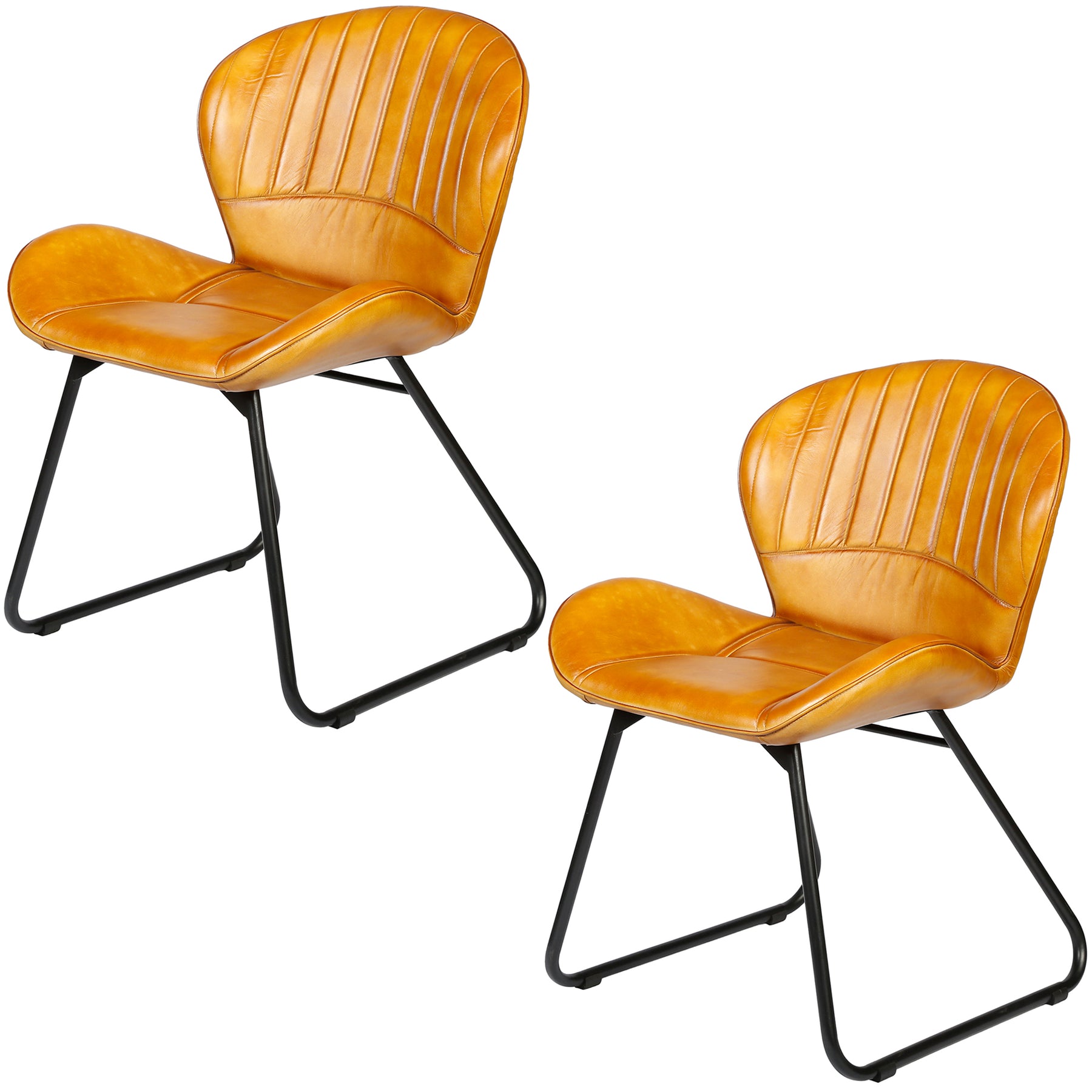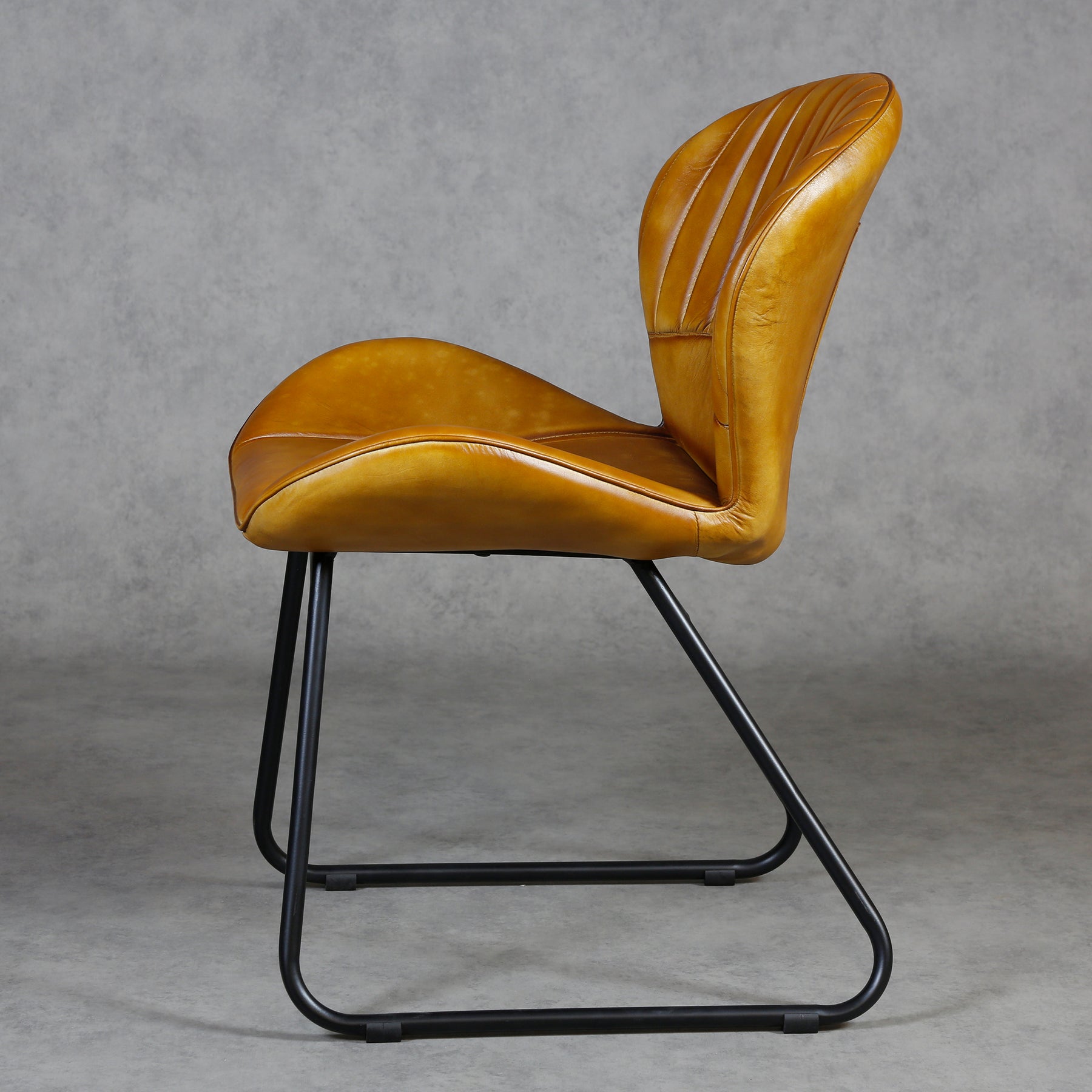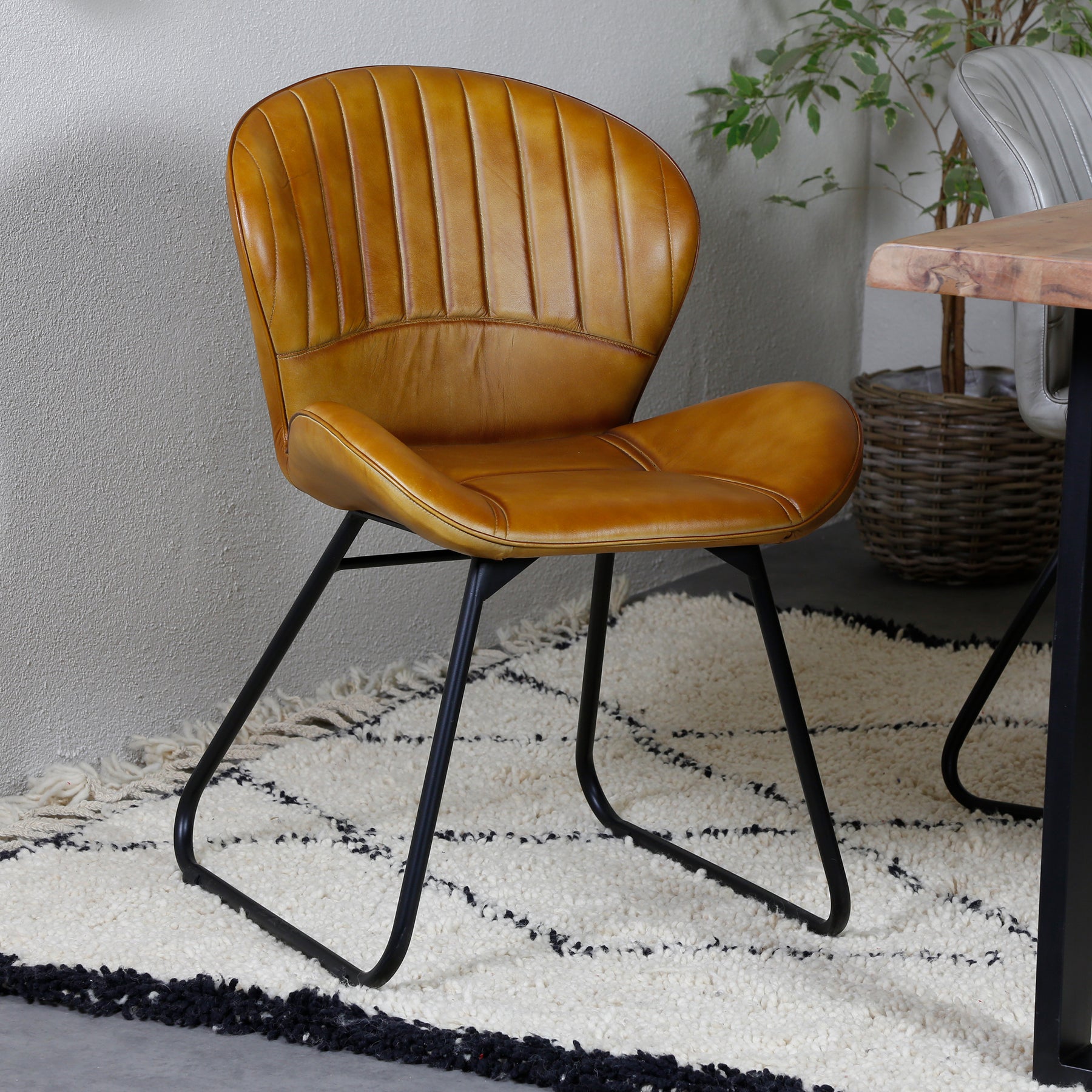Elegance and functionality: This upholstered chair combines the timeless beauty of genuine leather with the stability of a high-quality metal frame. The warm cognac color can be harmoniously integrated into various interior styles. The sturdy iron frame ensures high stability.