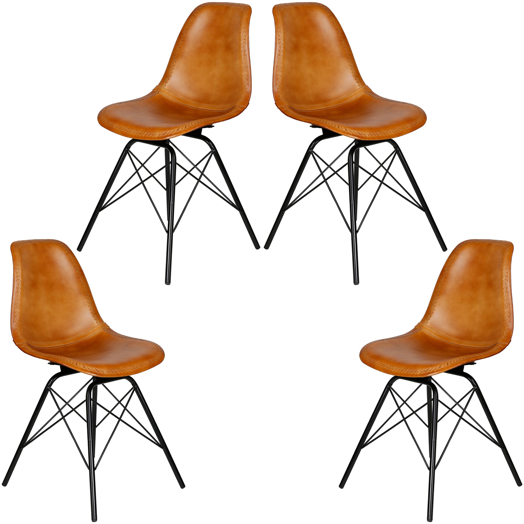 Whether as a waiting room chair, conference chair, or dining chair in the dining room, the combination of genuine cognac leather and iron makes this chair a stylish choice.