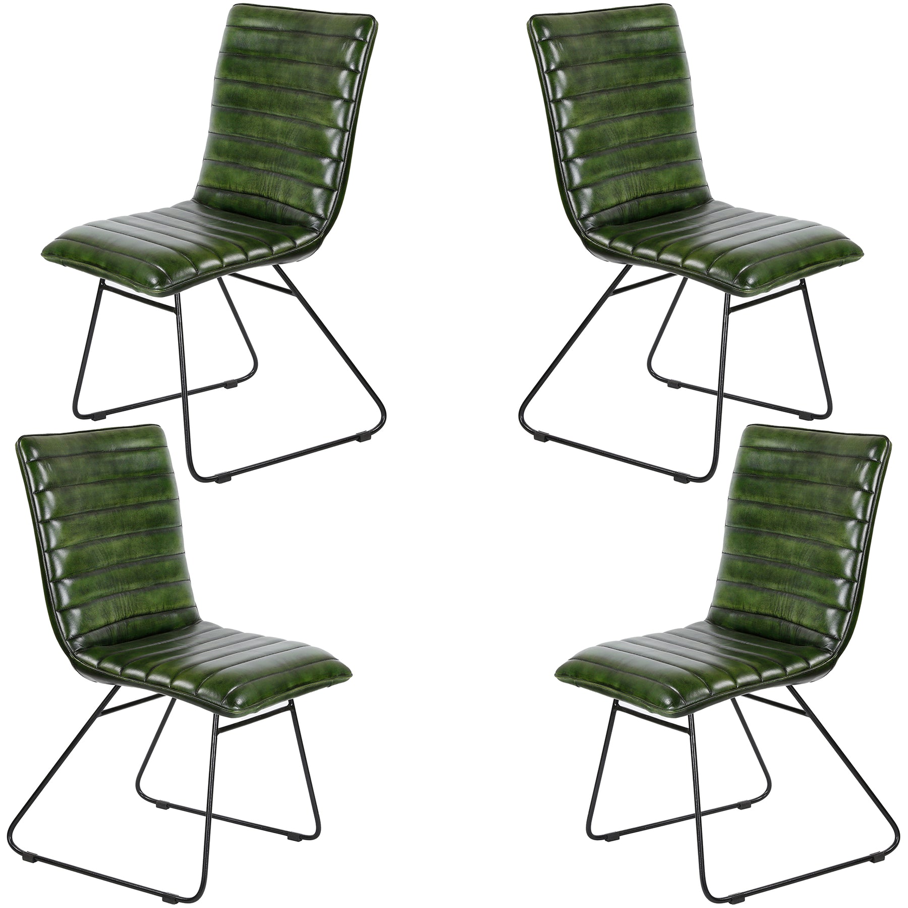 This chair combines the timeless beauty of genuine leather with the stability of a high-quality metal frame. The green color harmonizes with modern and classic living styles. The iron sled base ensures high stability and durability.