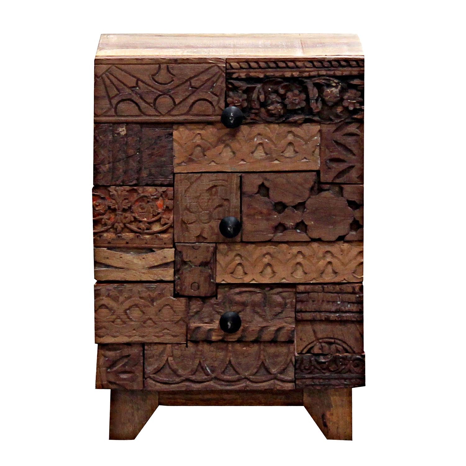 The chest of drawers offers plenty of storage space thanks to its 3 drawers. The combination of hand-carved ornaments and imaginative motifs gives the chest a mysterious, mystical look!