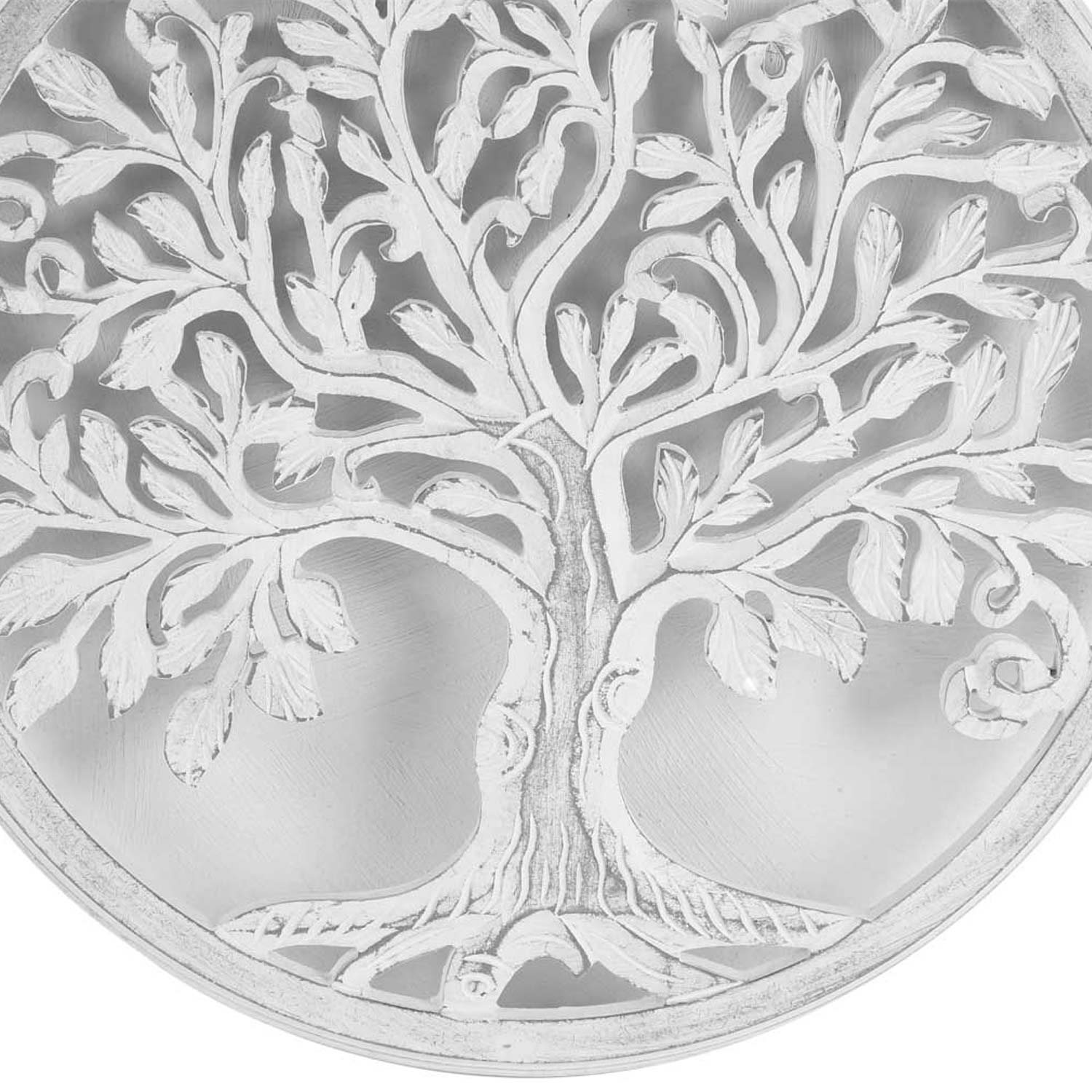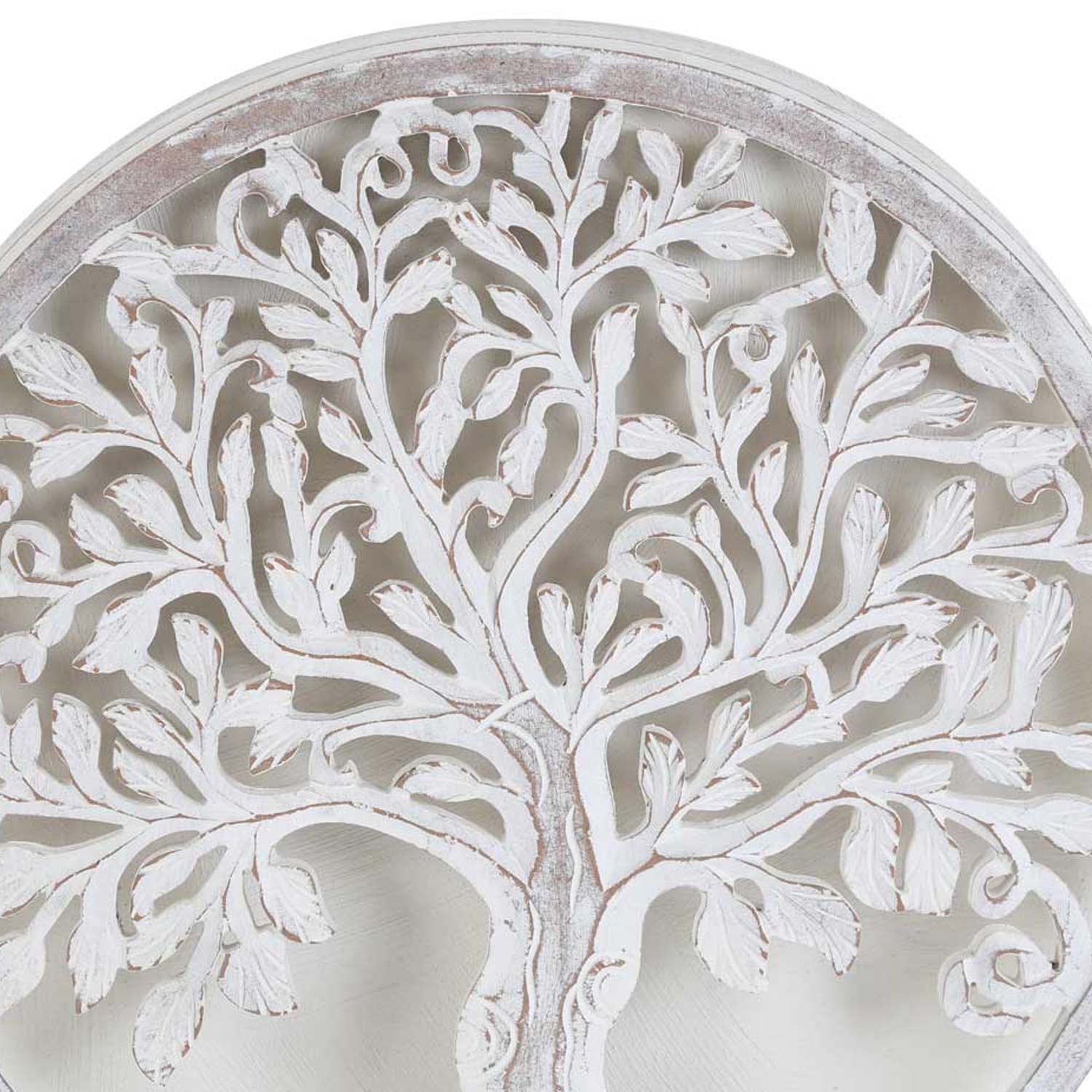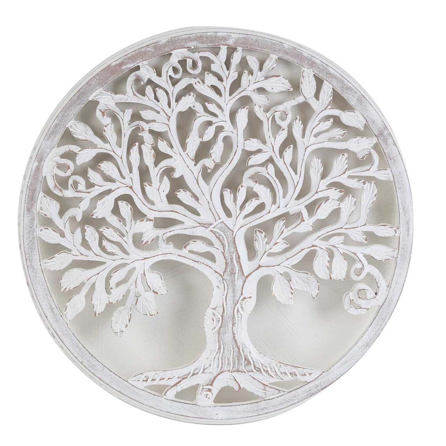 This oriental decoration made of hand-carved wood radiates warmth and friendliness. You can easily attach this round wall decoration to the wall with a few nails or simply lean it against the window. The modern wooden picture has a shabby chic style, achieved by applying the white paint extra thickly to create a charming vintage lookthat no one can resist.