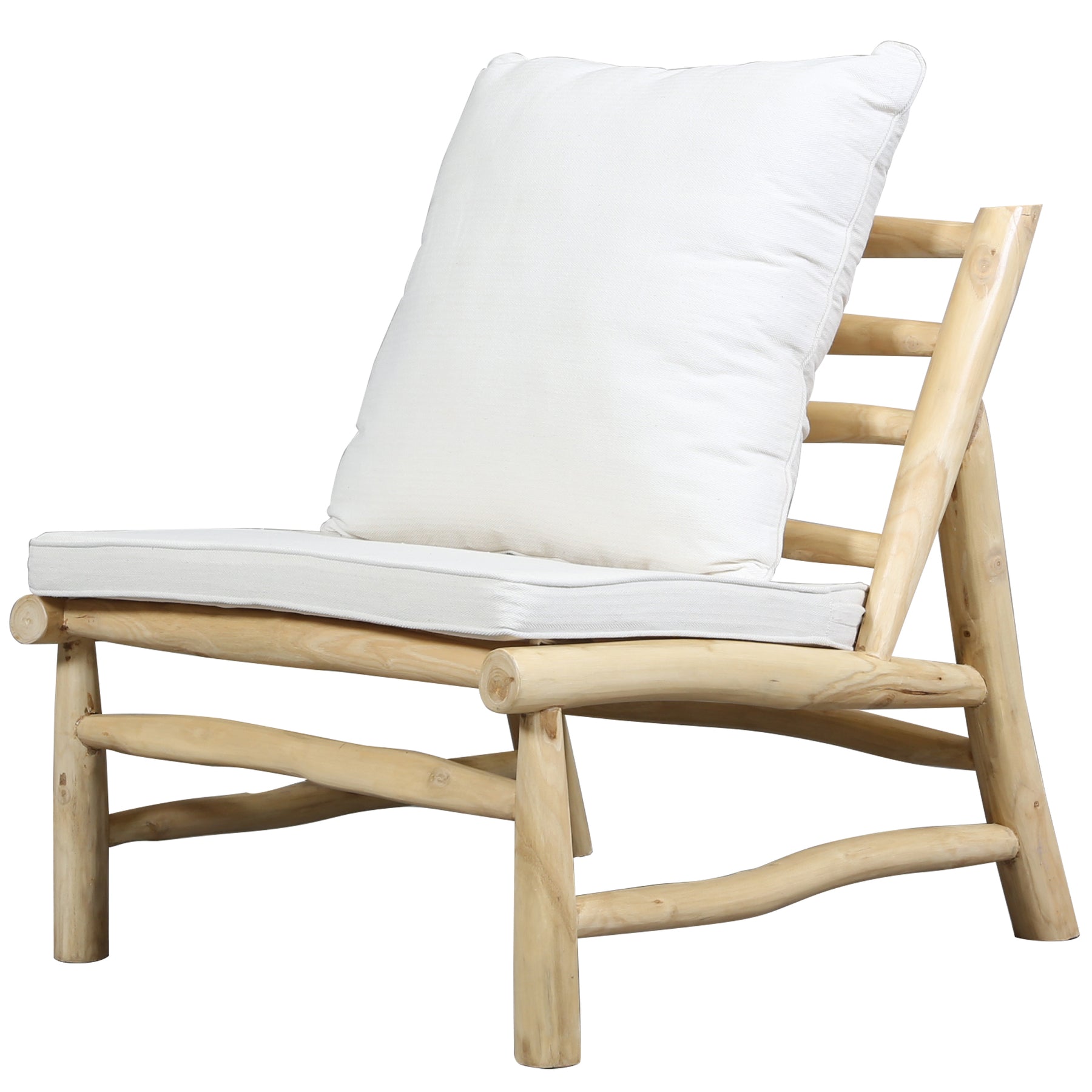 This armchair brings a lounge feeling to any room—whether outdoors on the balcony or terrace or cozy indoors in the living room. The lounge chair combines natural aesthetics with comfort and is truly one of a kind: made from natural teak branches, every grain remains visible—individual, lively, and full of character.