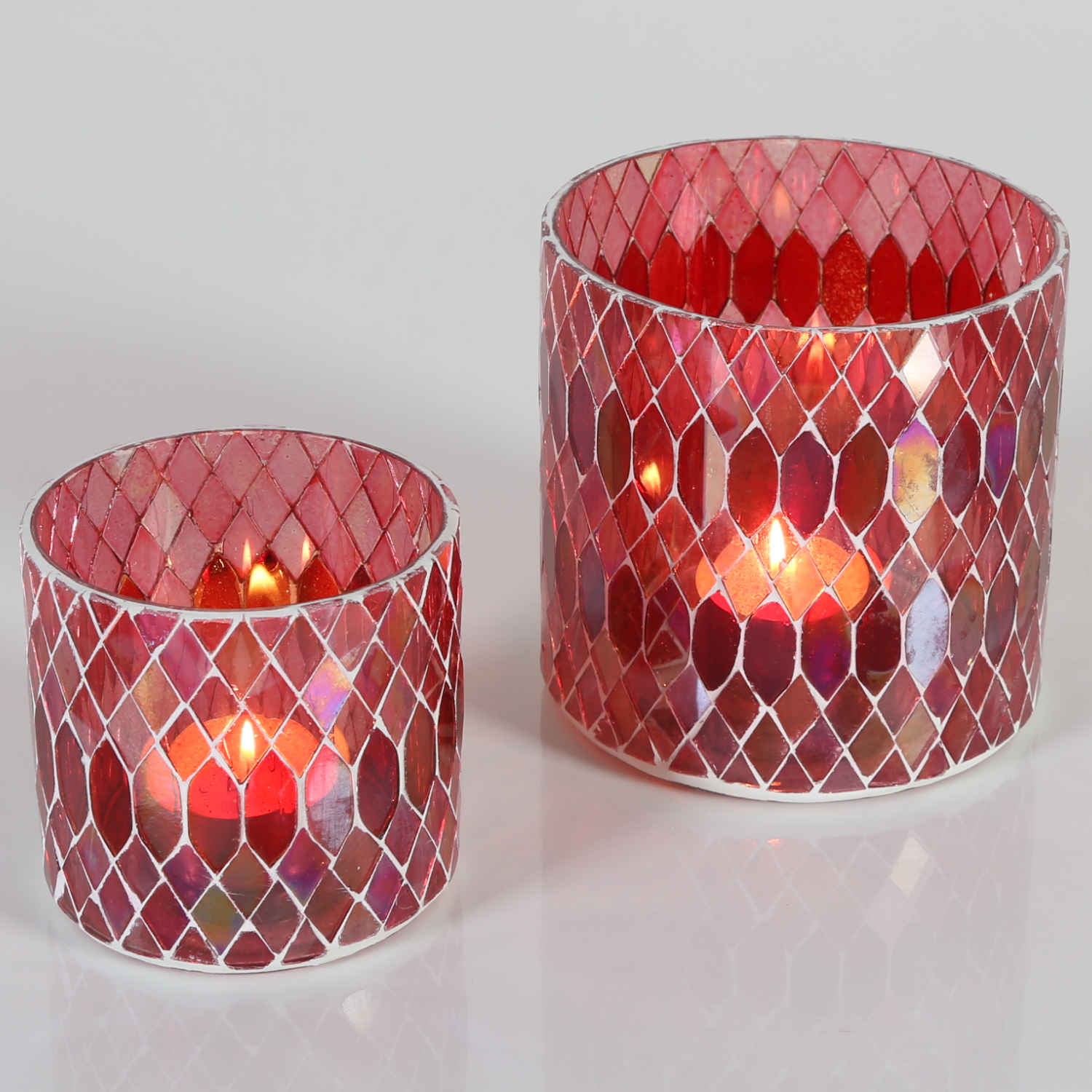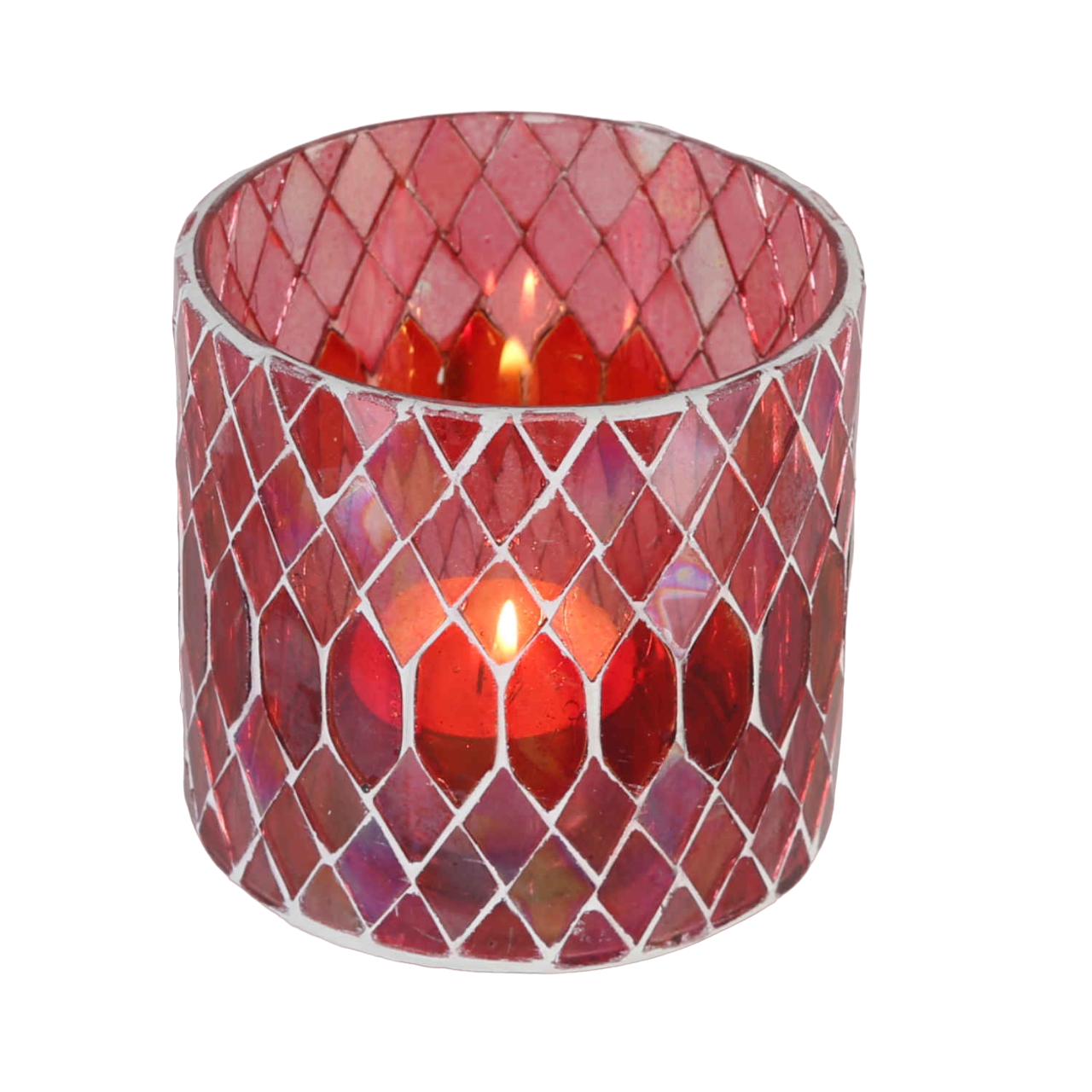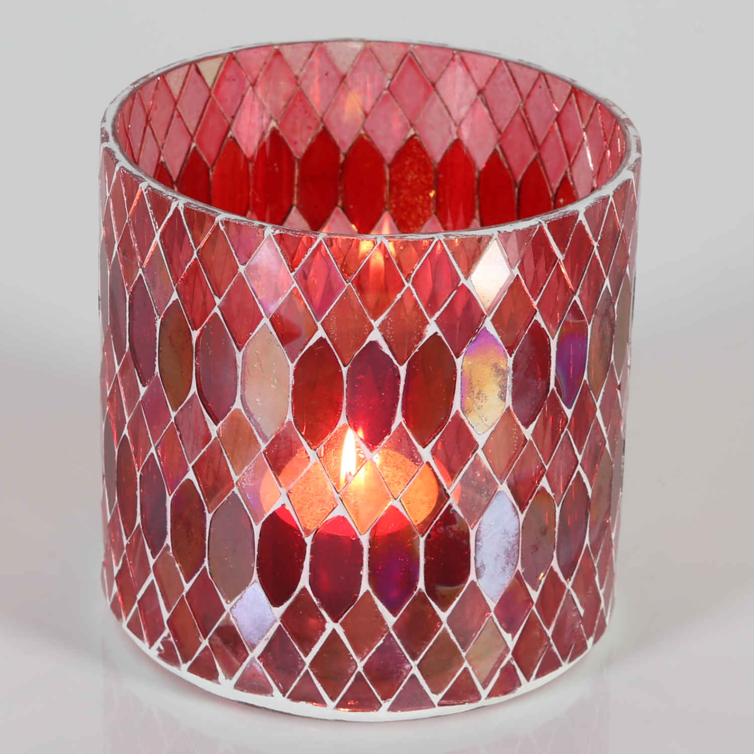 Decorative mosaic glass lantern, Rayan red tea light holder. The colorful glasses are decorated by hand on the outside with small mosaic glass stones, making each mosaic glass lanternunique. Whether in the living room as a table decoration, on the terrace as a garden lantern, in the bedroom as mood lighting, or as a candlestick in your restaurant, hotel, or lounge—themosaic lanterns always create an atmospheric ambience and become a decorative highlight that no one can resist.