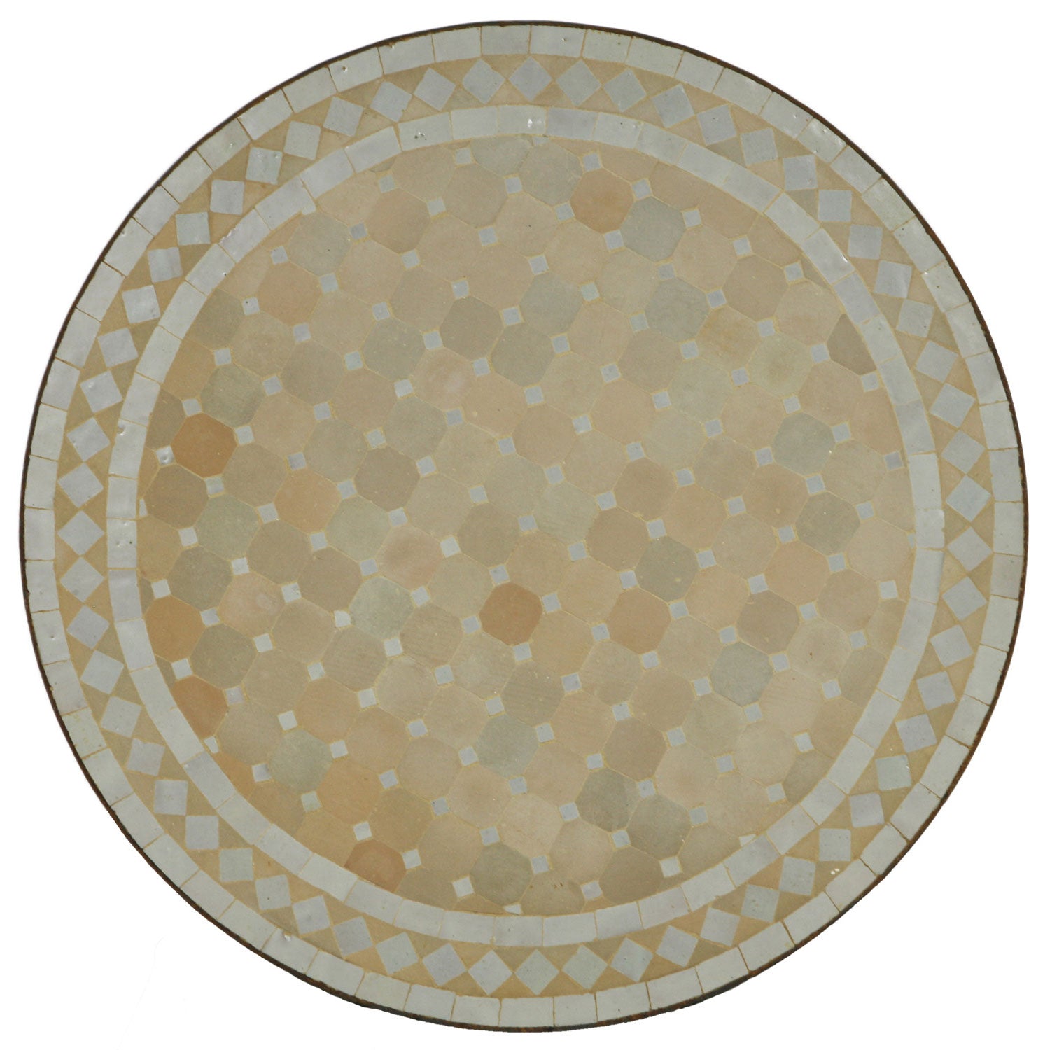 A diamond-shaped border is typical of a Moroccan mosaic table. In addition to its decorative function, it also has a symbolic meaning: as stylized eyes (witch's eyes), square diamonds are said to protect people from all kinds of misfortune. Mosaic artists place a wide variety of patterns and ornaments within this frame. However, one thing always remains the same: the glazed mosaic pieces are first cut from the handcraftedzellige tilesusing a sharp-edged hammer. Each tabletop is purely handmade and therefore absolutely unique.