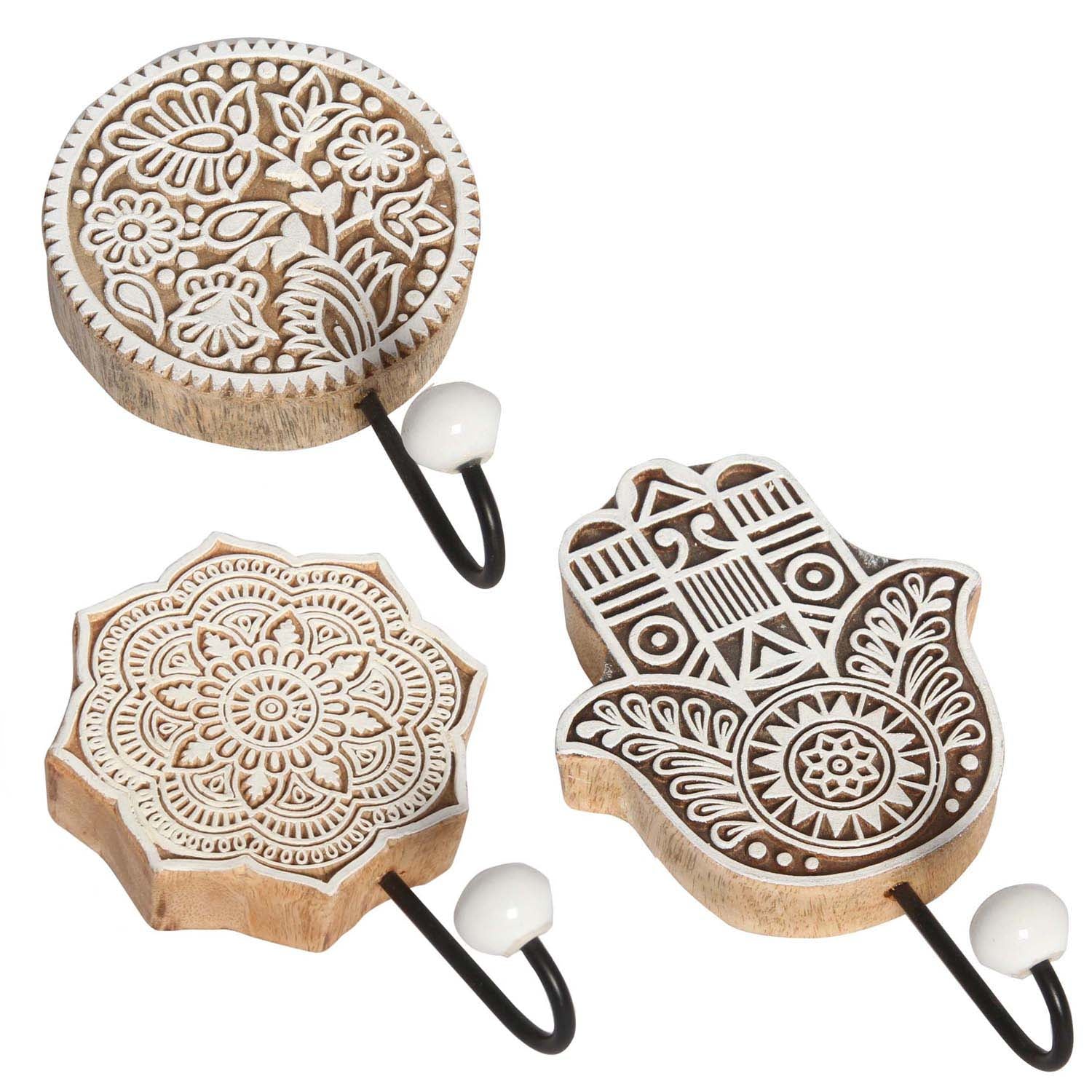 This Yasid coat hook set has been handmade, hand-painted, and hand-carved, so slight variations in pattern,