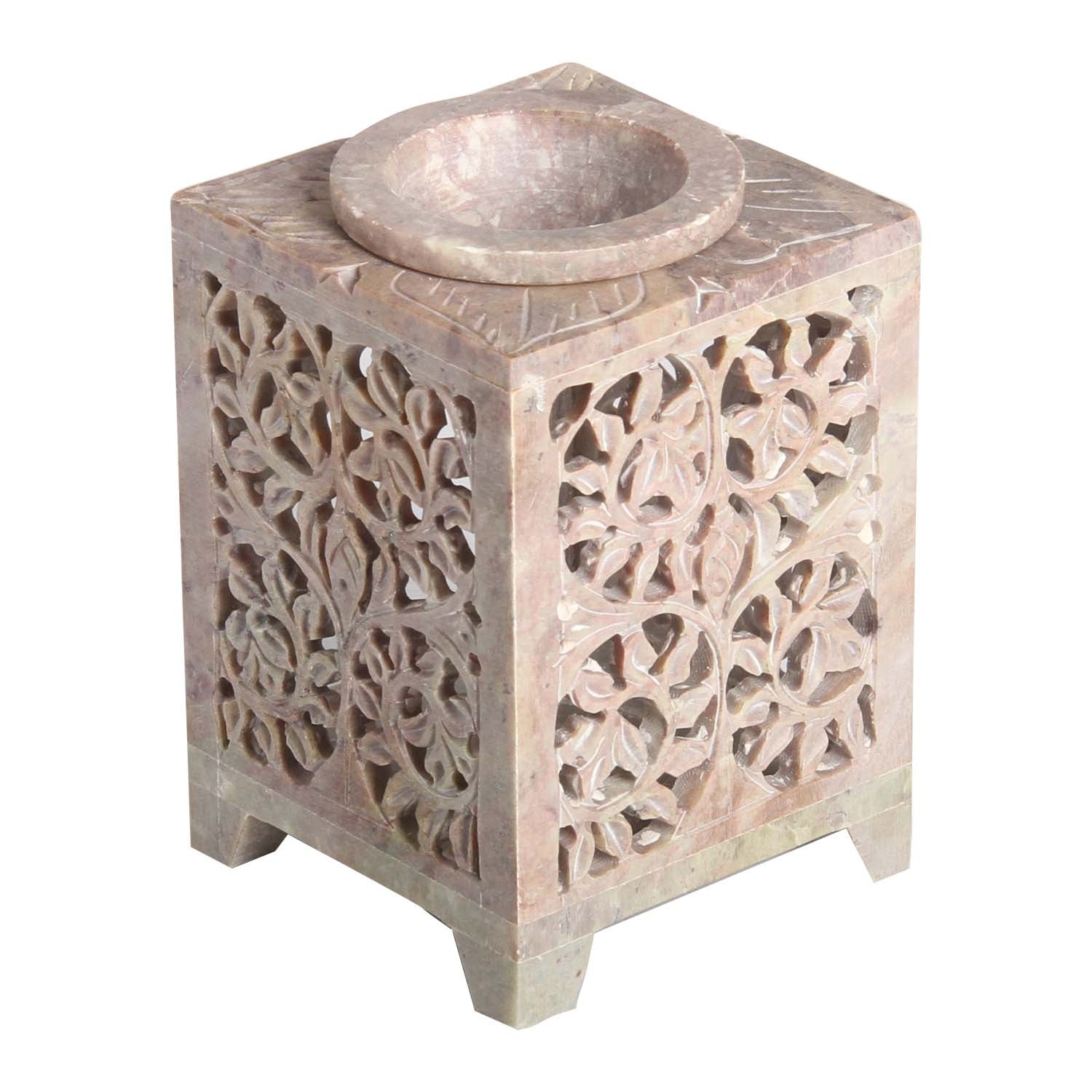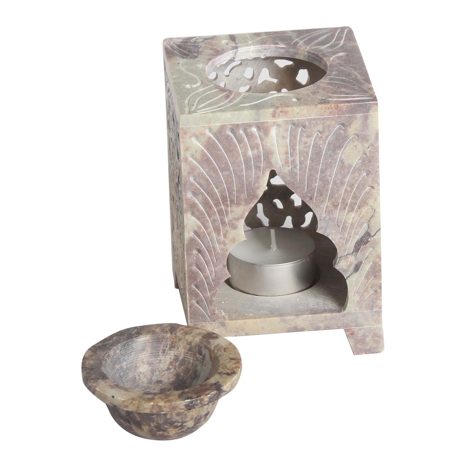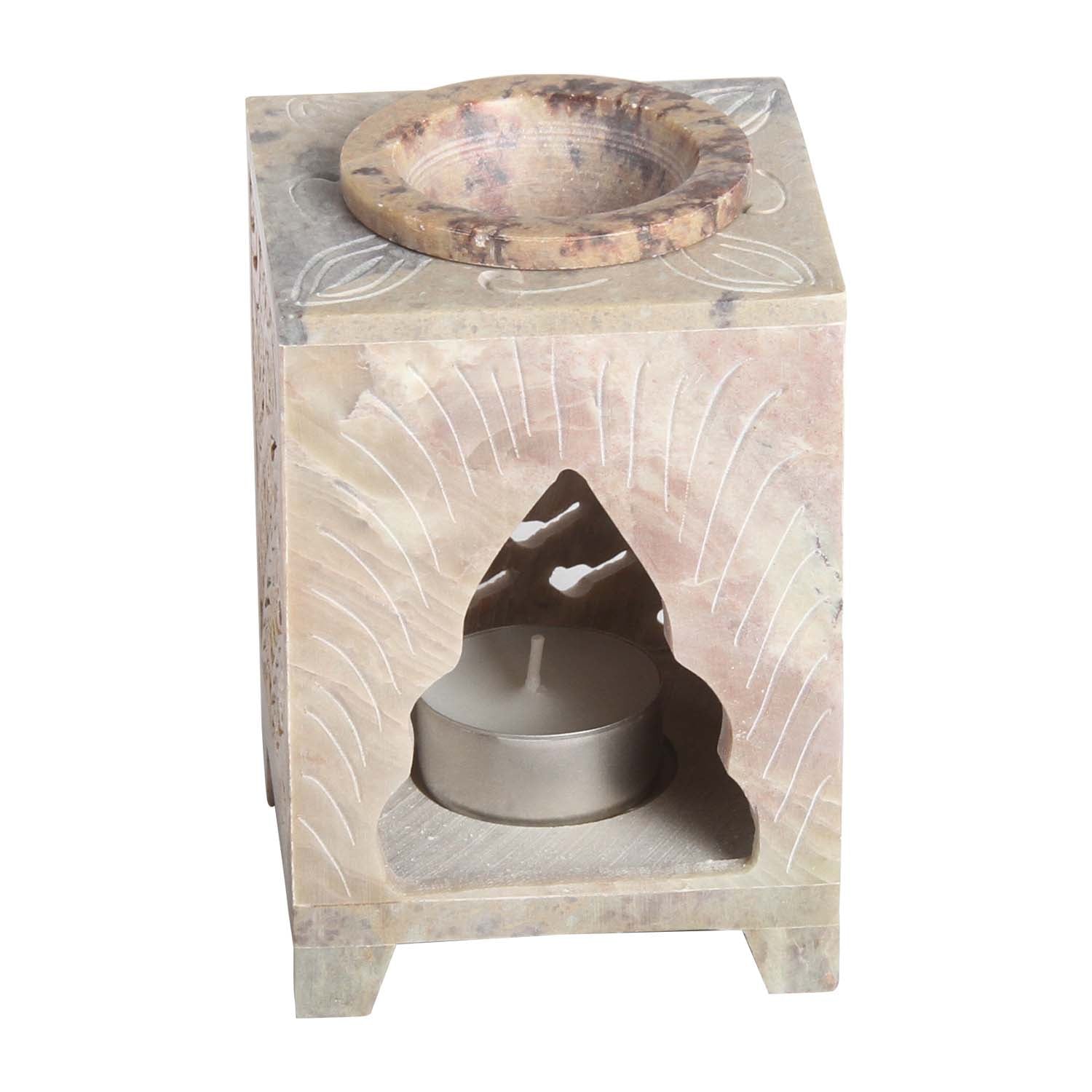 Handcrafted Shiva fragrance lamp made of soapstone for tea light candles. The delicate ornaments were traditionally carved into the stone by hand. Our fragrance lamp cuts a fine figure both as an aroma lamp in aromatherapy and as a decorative tea light holder, creating a relaxing atmosphere with its shadows. Together with aromatic fragrance oils, it creates a cozy mood. Perfect for your meditation session, yoga or spa.