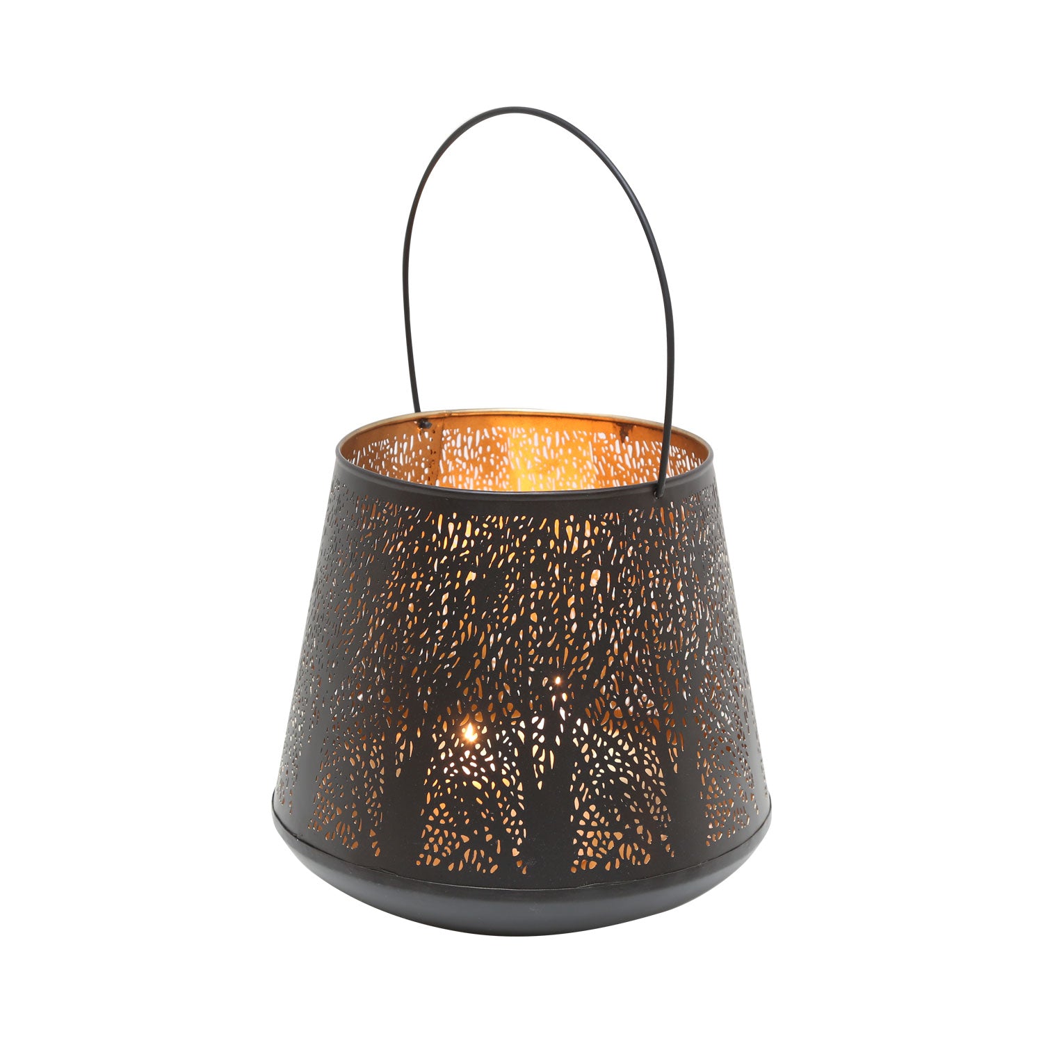 Ourlantern is painted gold on the inside and black on the outside. There is enough space inside to place a pillar candle or a string of lights. Whether on the terrace, in the house, or in the garden, this candle holder creates a beautifuloriental ambience.
