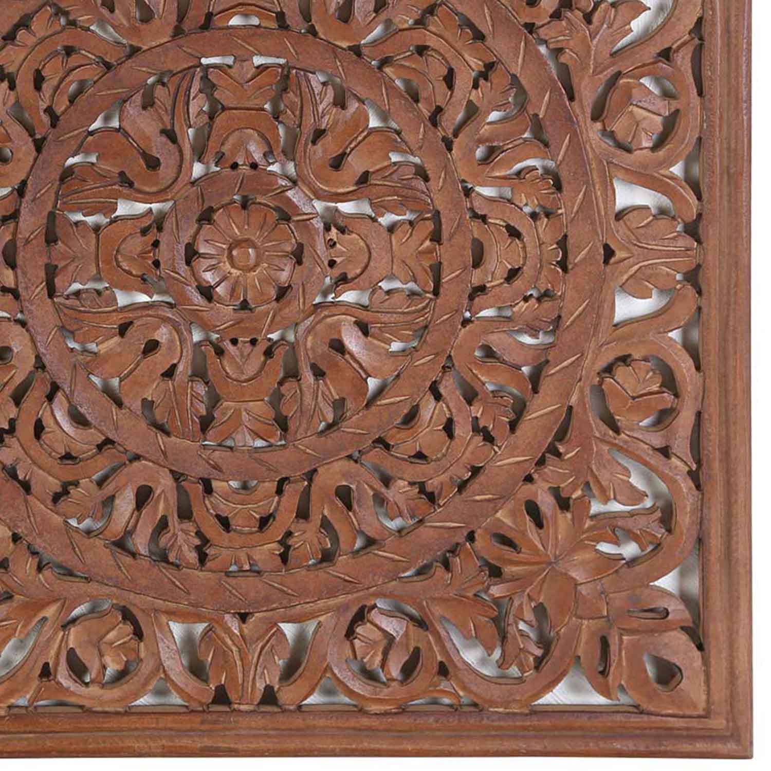 The Mandala Lema is made of carved wood and is lovingly handcrafted with great attention to detail. The wall decoration can be attached to the wall or leaned against the window. The wooden ornament in the shape of petals can be combined with any interior design style and radiates warmth and friendliness. It takes you on a journey to the Orient without you having to leave your home.
