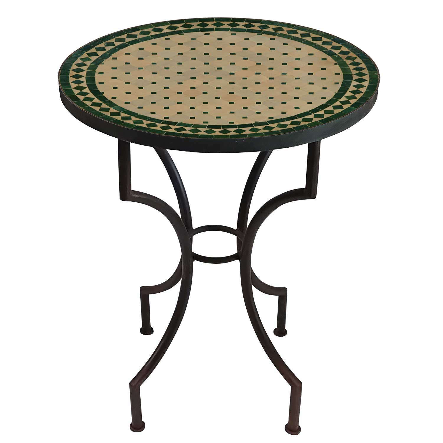A round mosaic table with a diameter of 60 cm, which, with its classic green zellige pattern, becomes the atmospheric centerpiece of a small terrace or balcony. Lovingly handcrafted, it brings Moroccan craftsmanship and stylish lightness to urban outdoor areas.