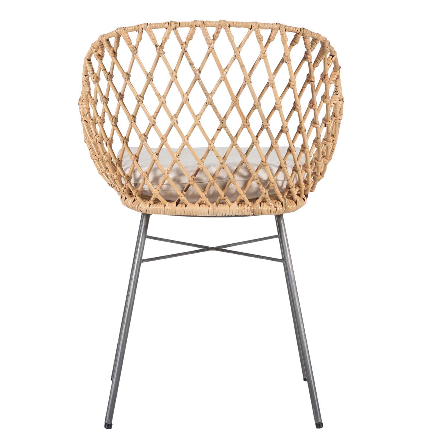 Our Borneo rattan armchair offers an elegant vintage look for your home. The rattan chair with seat cushion is lightweight, sturdy, and natural. The metal frame is made of powder-coated wrought iron.