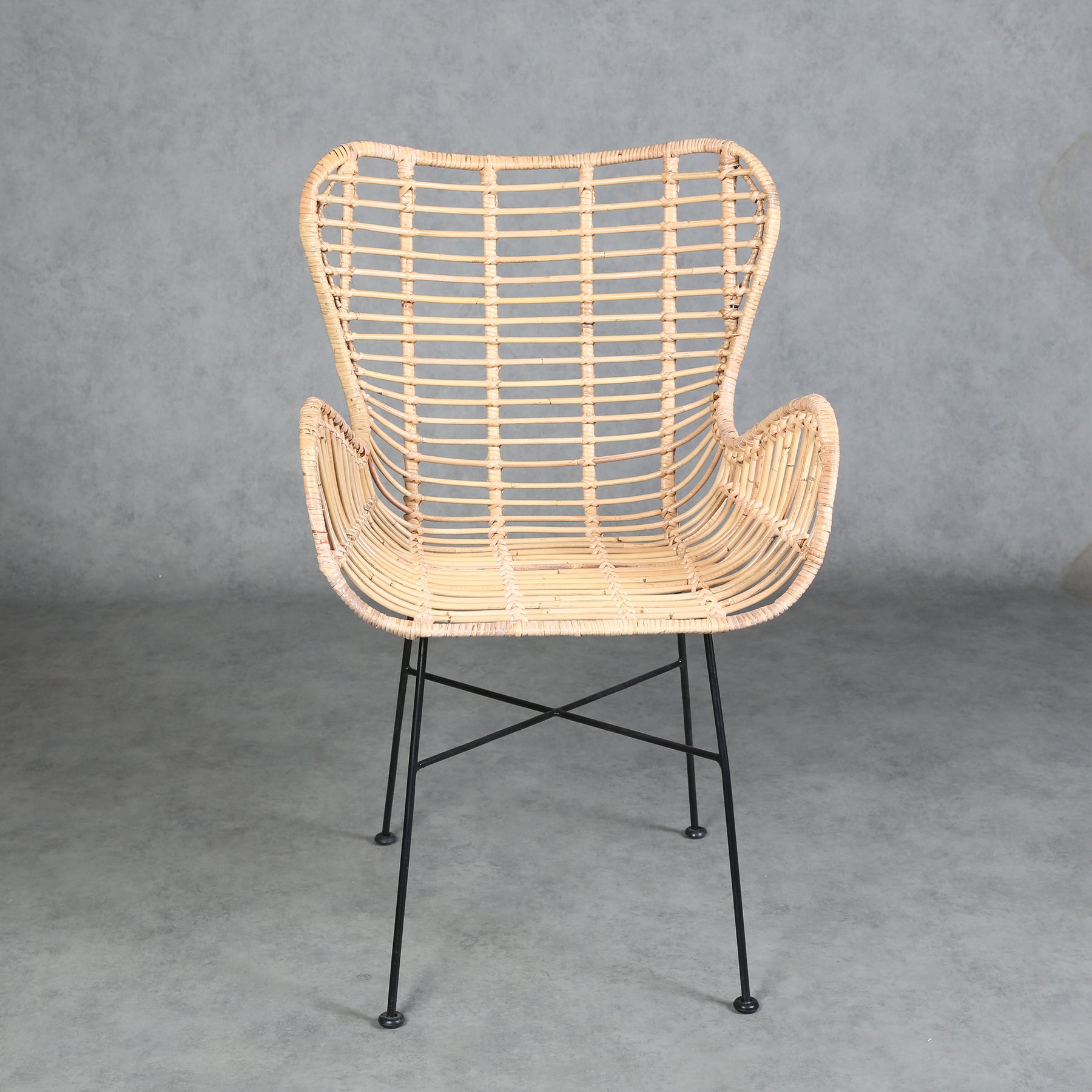The extra-wide Monia rattan armchair not only offers you a comfortable place to sit, but also gives any living room a Mediterranean feel. This recliner is hand-woven from natural rattan, making it lightweight, sturdy, and natural. The frame is made of powder-coated wrought iron. This rattan chair invites you to relax and is also a decorative highlight for any living area.