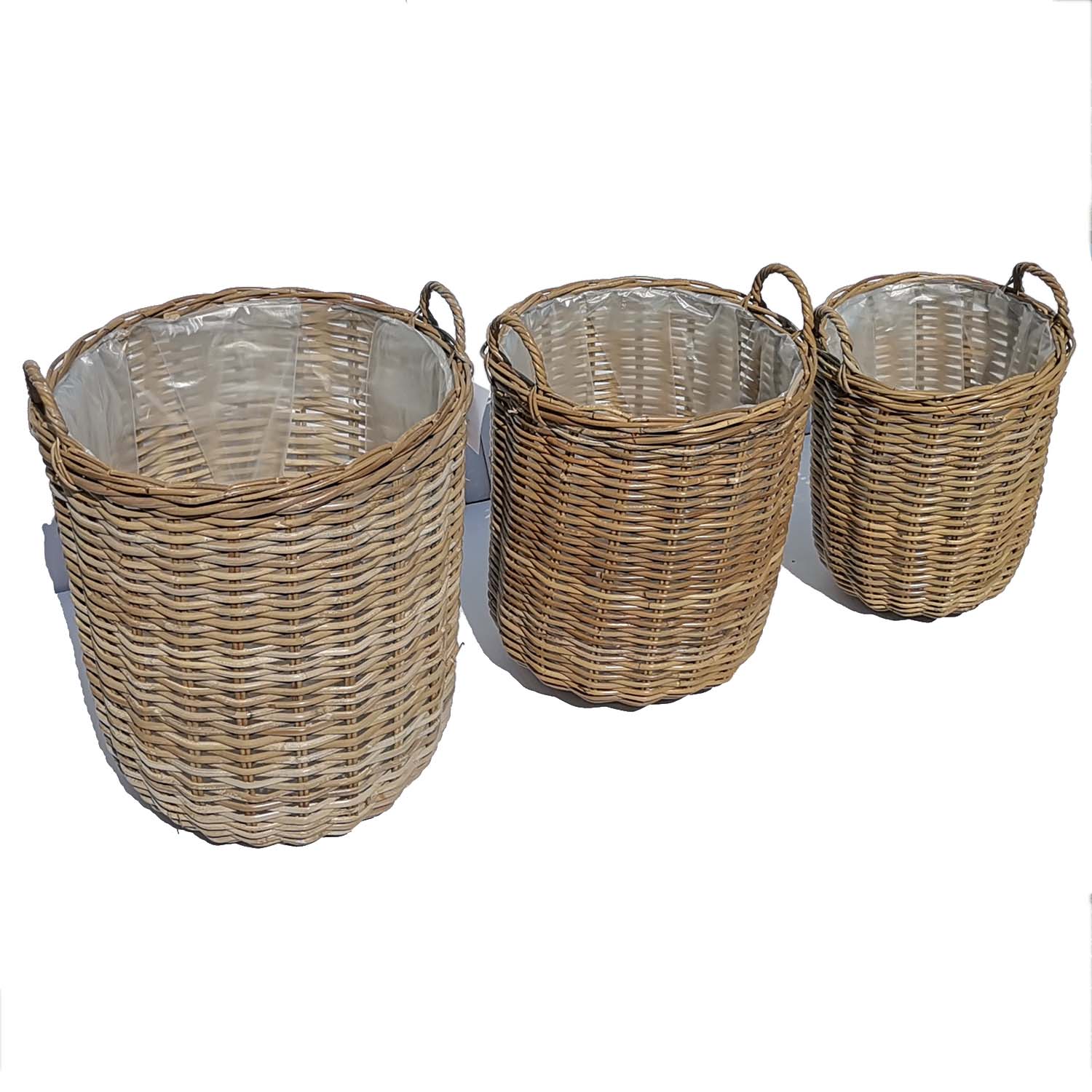 The Rimini rattan basket ishandmade from100% natural rattan, providing you with an eco-friendly storage solution. These rustic woven baskets arenatural,beautiful, and sturdy, making them ideal for storage and decoration. Each rattan basket islined with atransparent film, making it also suitable for use asa decorative flower potorplant basket.