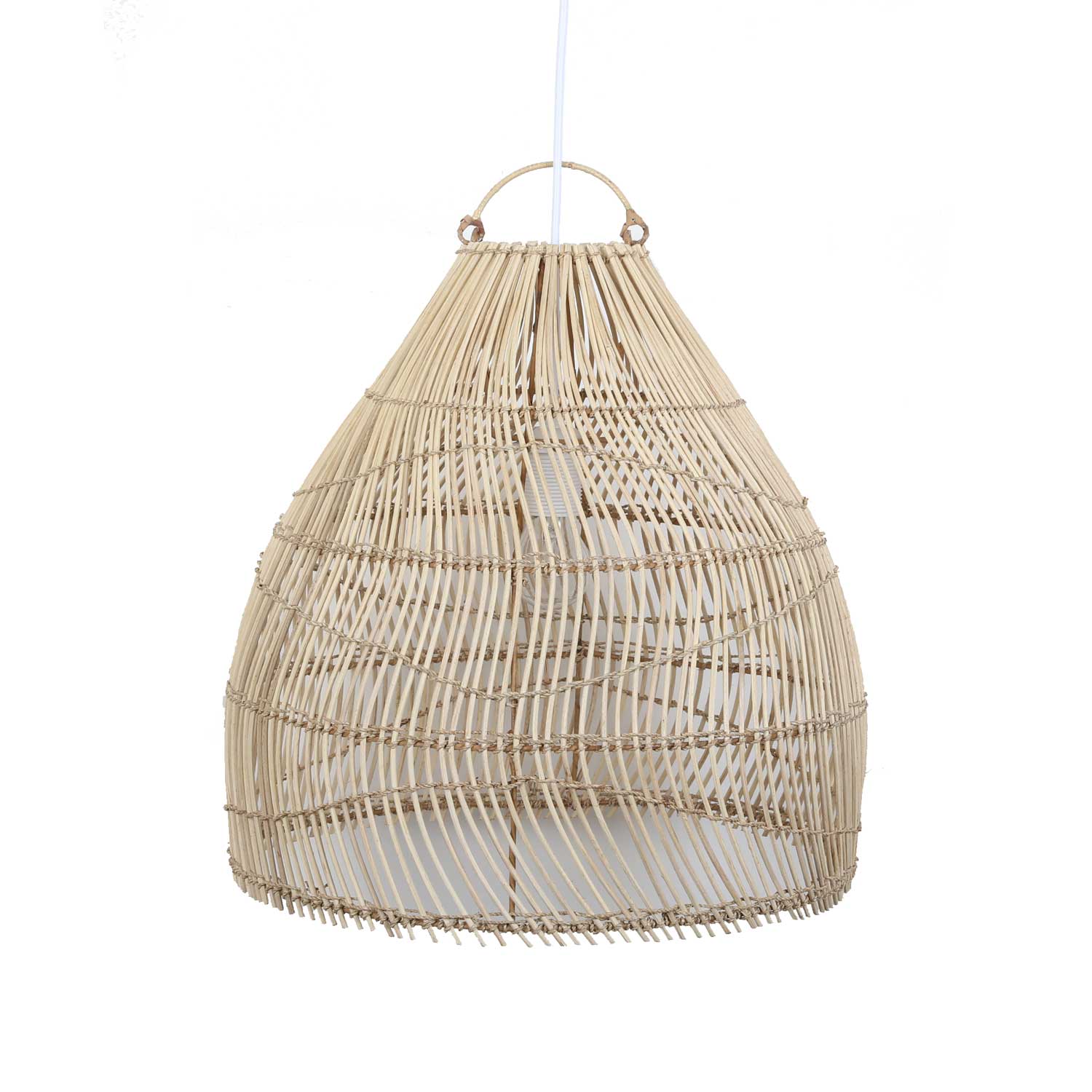 Highly decorativeNora rattan lamp, handmadefromnatural rattan and iron. This natural rattan pendant lamp blends seamlessly into any interior style, such as Scandinavian, Mediterranean, boho, and hygge.Natural and sustainable, it is entirely handmade and reminiscent of summer nights on the beach. When switched on, it reflects the natural colors of the natural fiber.An atmospheric light that spreads a holiday mood, Christmas spirit, and pure coziness.