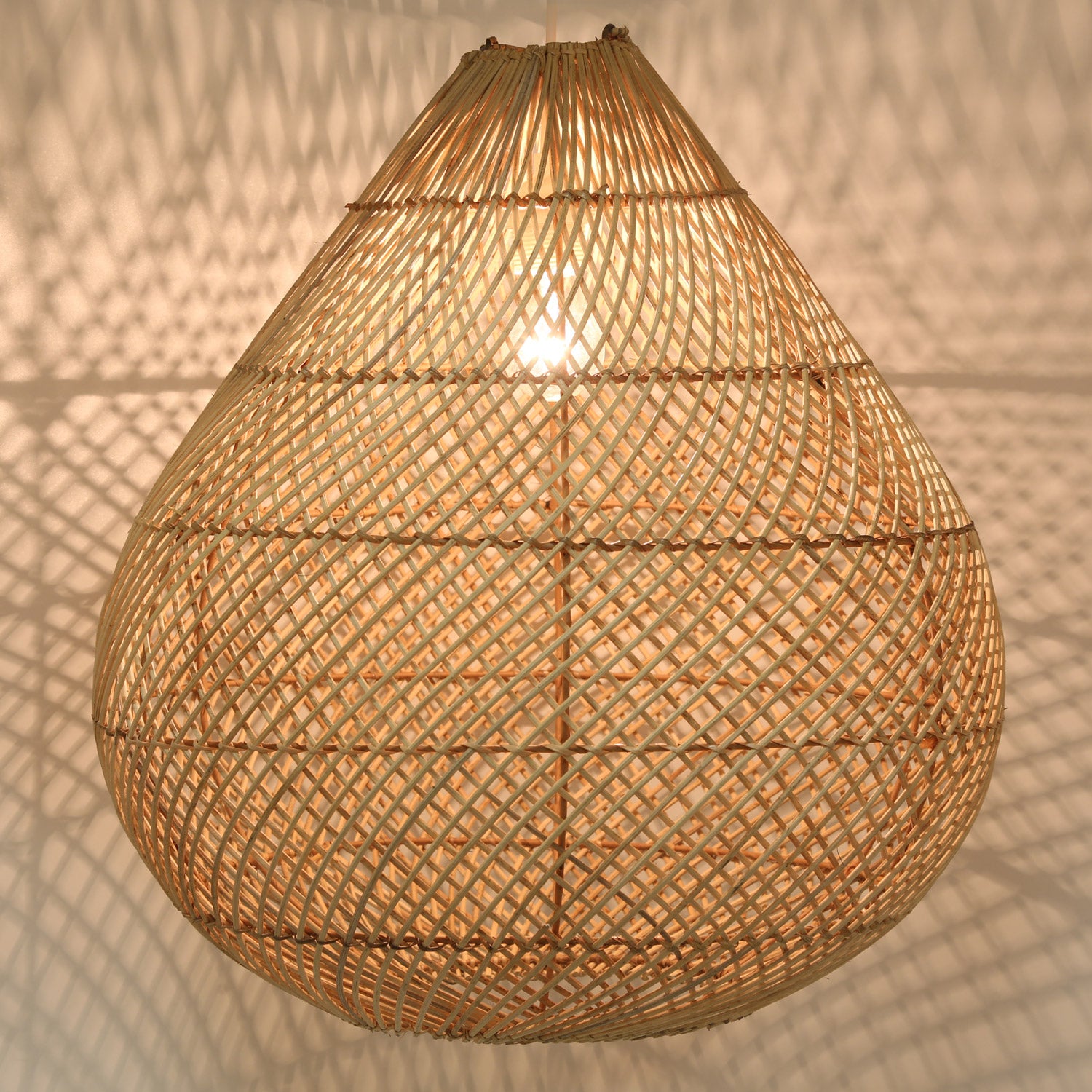 Highly decorativeMajene rattan lamp, handmadefromnatural rattan and iron. This natural rattan pendant lamp blends seamlessly into any interior style, such as Scandinavian, Mediterranean, boho, and hygge.Natural and sustainable, it is entirely handmade and reminiscent of summer nights on the beach. When switched on, it reflects the natural colors of the natural fiber.An atmospheric light that spreads a holiday mood, Christmas spirit, and pure coziness.