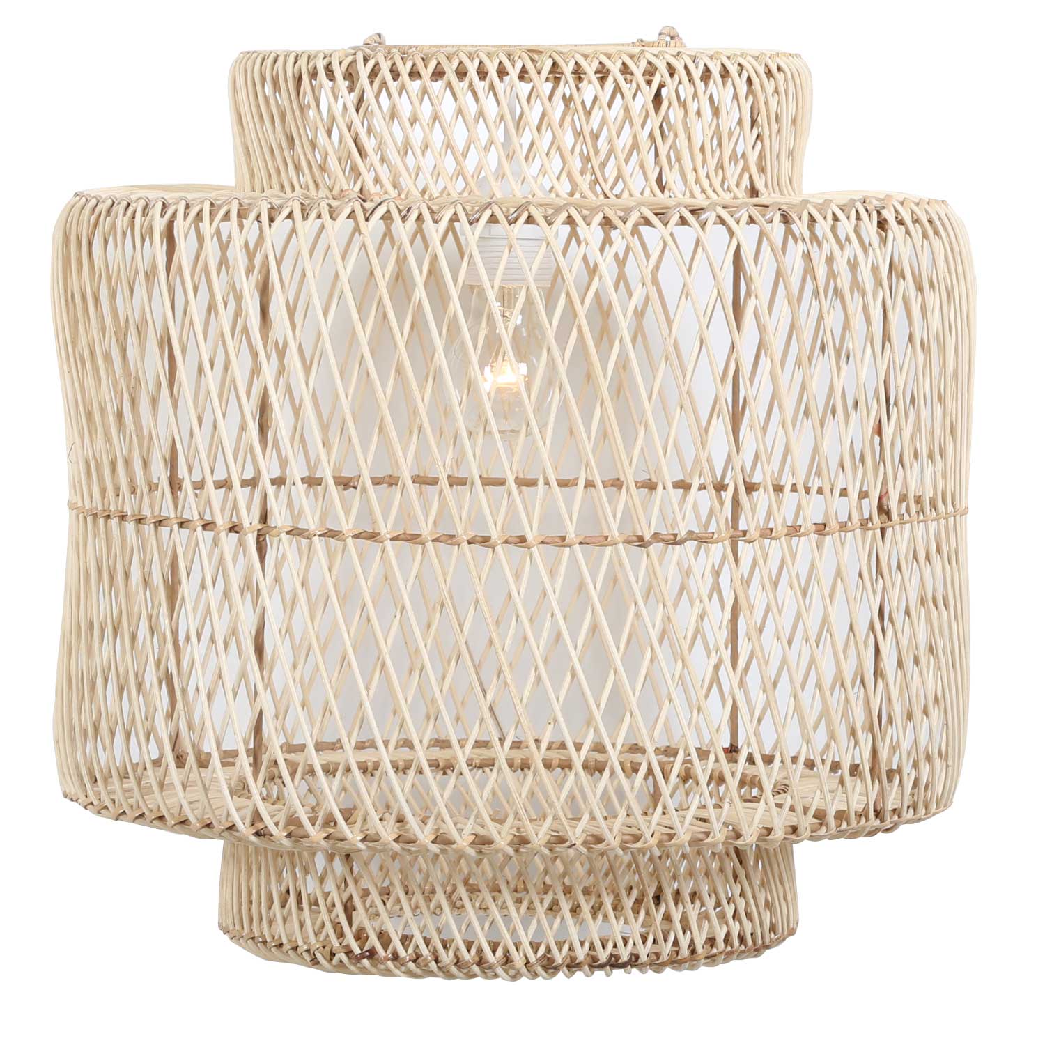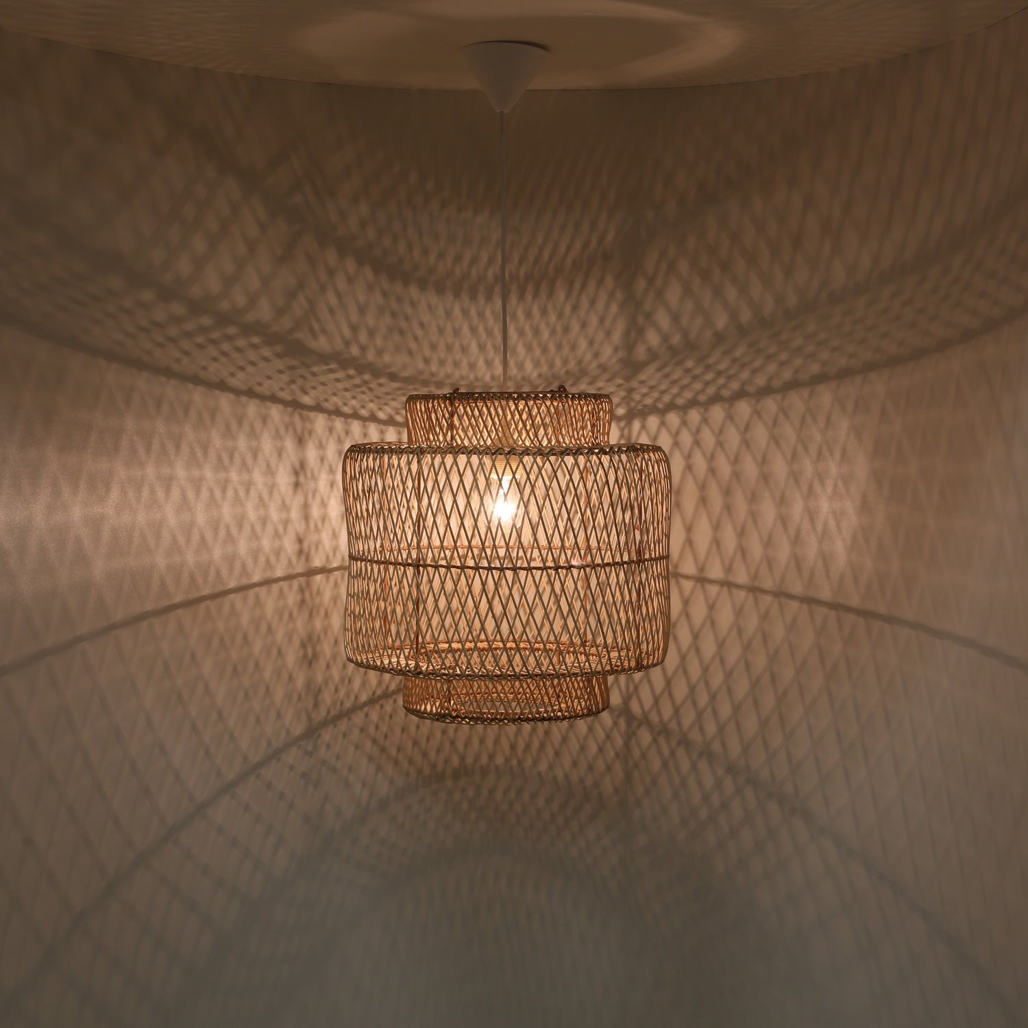 Highly decorativeTaman rattan lamp, handmadefromnatural rattan and iron. This natural rattan pendant lamp blends seamlessly into any interior style, such as Scandinavian, Mediterranean, boho, and hygge.Natural and sustainable, it is entirely handmade and reminiscent of summer nights on the beach. When switched on, it reflects the natural colors of the natural fiber.An atmospheric light that spreads holiday cheer, Christmas spirit, and pure coziness.