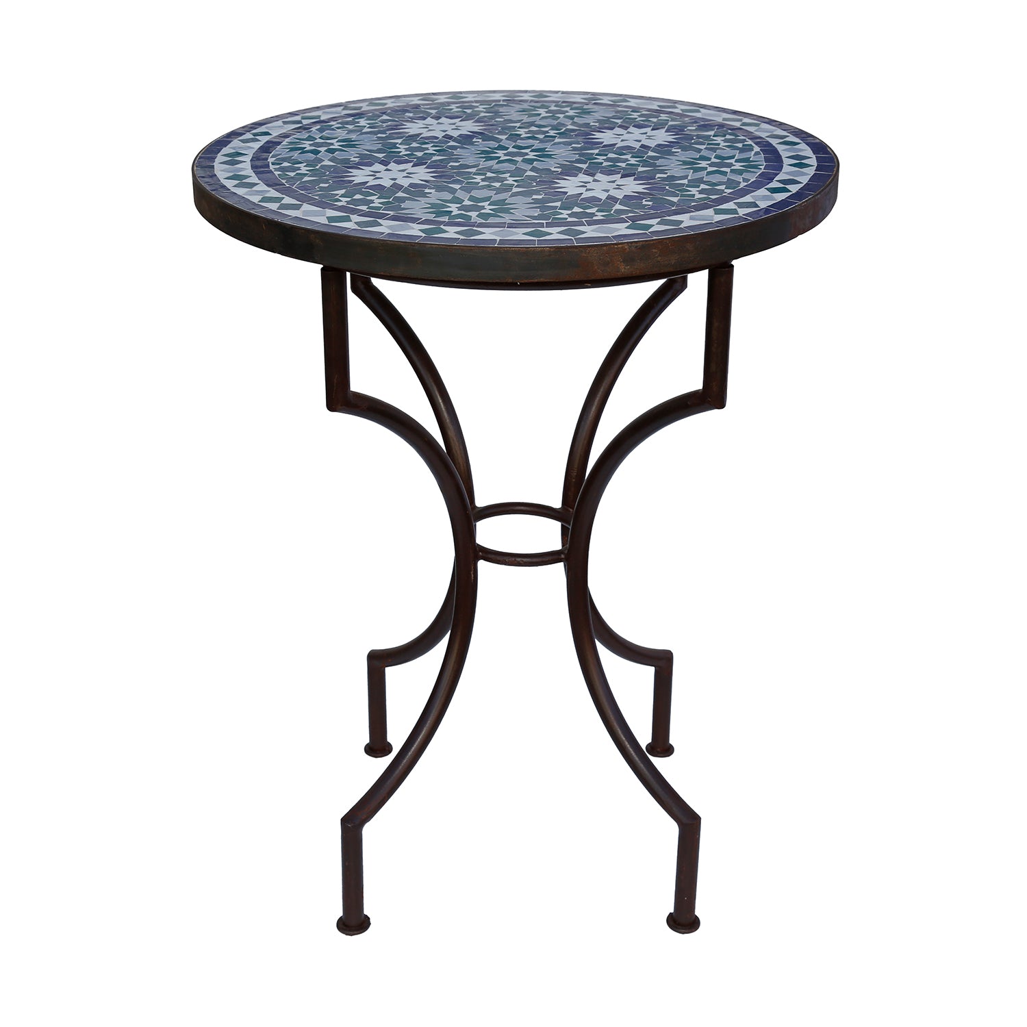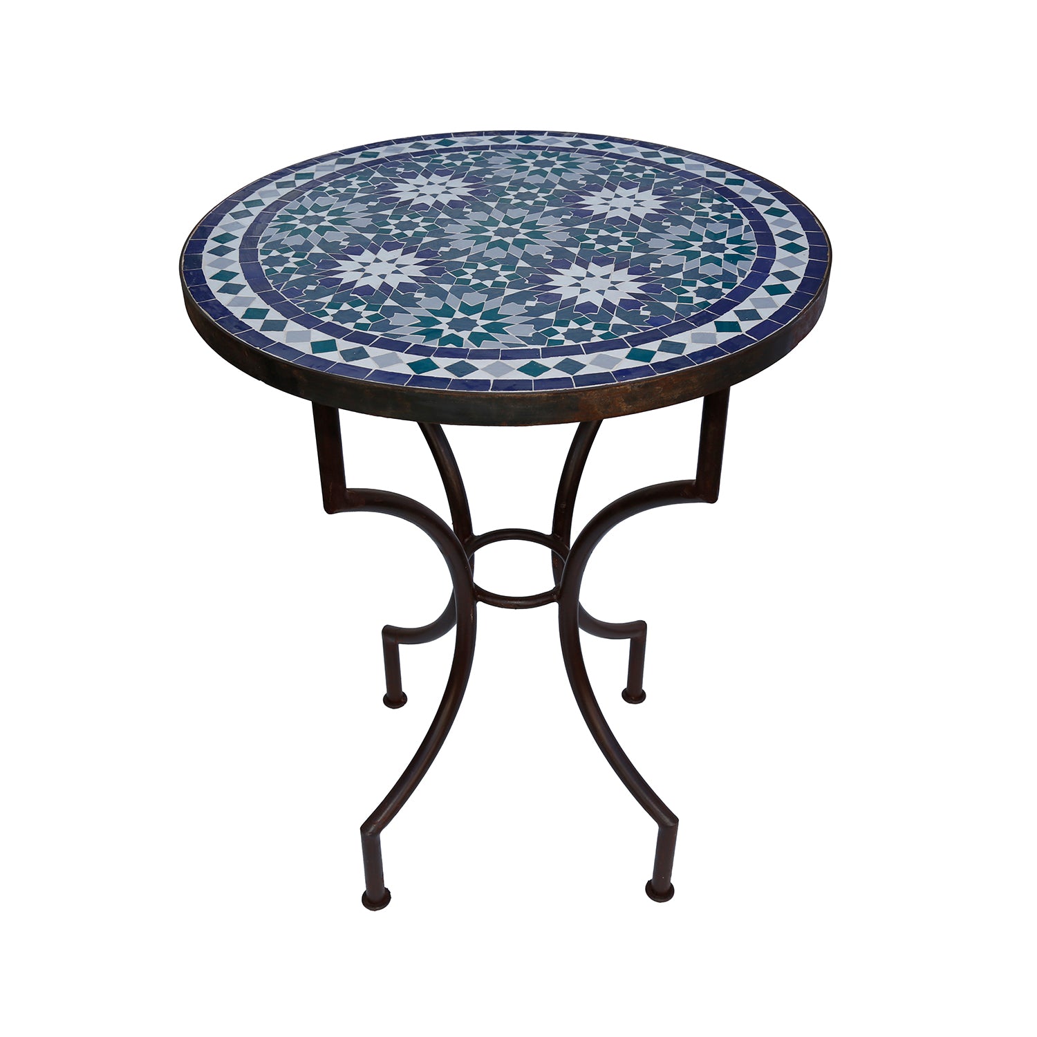 Round garden table Ø 60 cm with Moroccan mosaic made of zellige tiles in blue, green and white